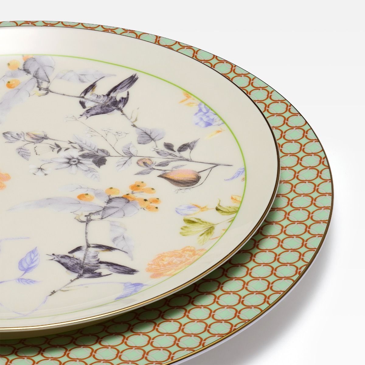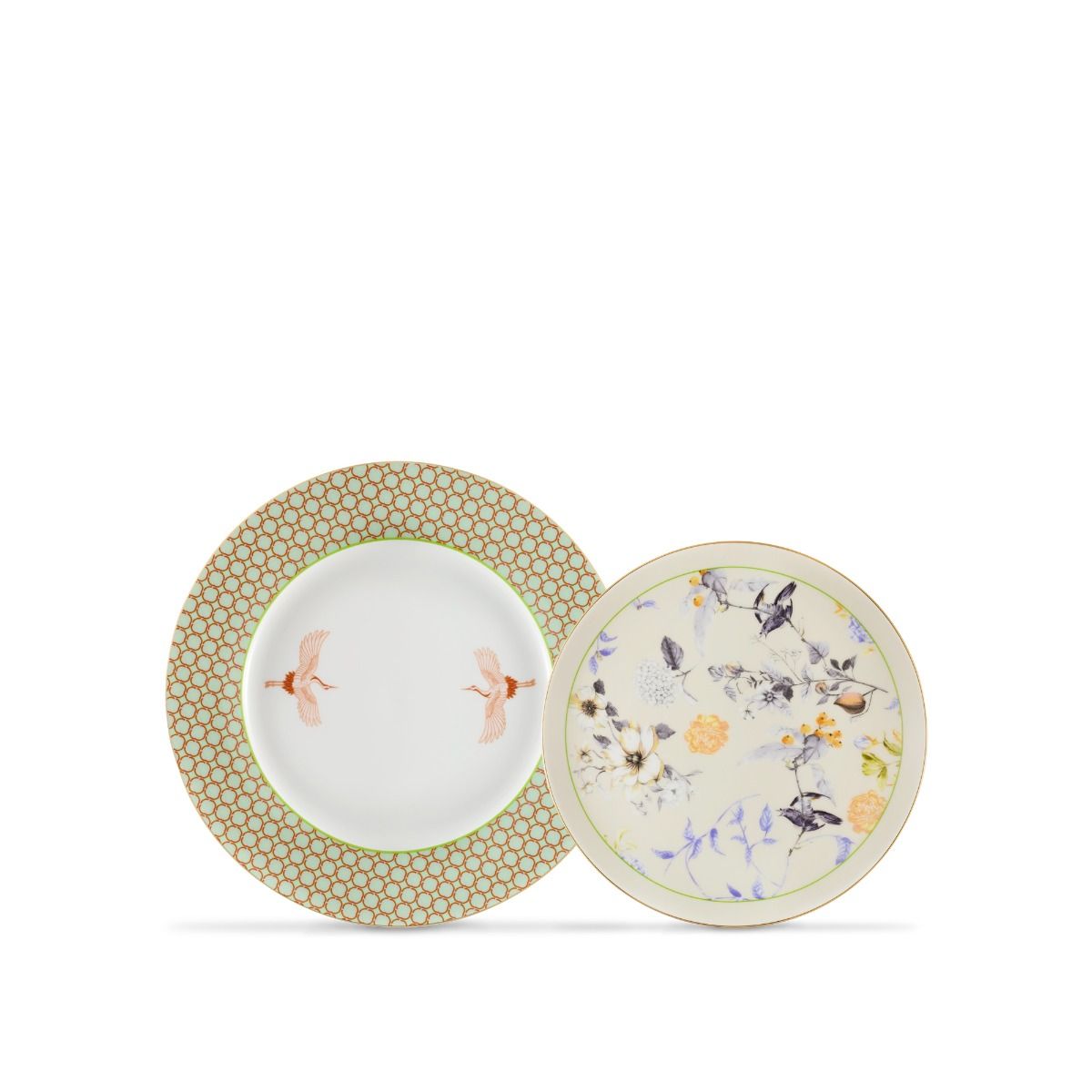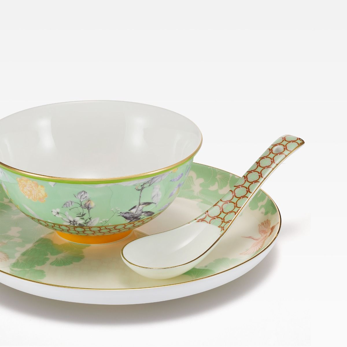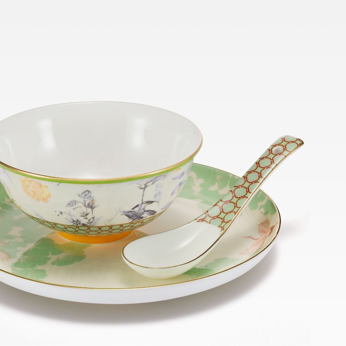「仙鶴遊園」系列將仙鶴和銀杏葉等富有靈動感的意象融入設計中,打造出淡綠色的蓋碗茶套組、清新脫俗的骨瓷方罐、以及骨瓷碗碟和珠寶盒等。這些作品詮釋了春夏明媚的詩意,探索當代中國精緻風格,展現獨特藝術風格和卓越質感。