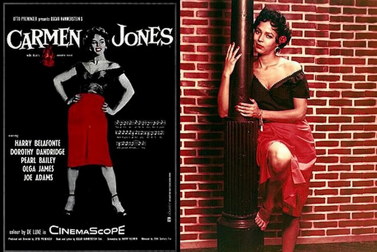 Otto Preminger 的大膽戲劇是對 Georges Bizet 飾演的卡門(Carmen)的嶄新詮釋,其全黑演員陣容將行動轉移到第二次世界大戰降落傘工廠。 Dorothy Dandridge成為名義上的誘惑者,打算誘使一名士兵(Harry Belafonte飾)離開未婚妻。 悲劇在等待,但Dandridge令人振奮的熒屏形象使她成為首位獲得奧斯卡最佳女主角提名的黑人女性。