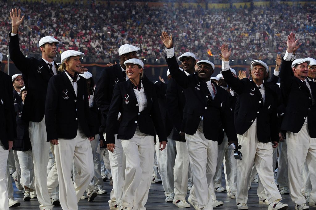 在2008年北京夏季奧運會上, Ralph Lauren 為美國隊保留了一個青春活潑的大學生外觀:印有奧運五環標誌的海軍藍西裝外套和普通的卡其色休閒褲。那年的奧運會標誌著他作為美國隊官方制服設計師的第一個任期,協議期從2008年到2020年。他的另一個值得注意的亮點是在2016年,里約奧運會的開幕式和閉幕式服裝由條紋T卹疊加在西裝外套下面,搭配白色褲子和紅白藍船鞋。