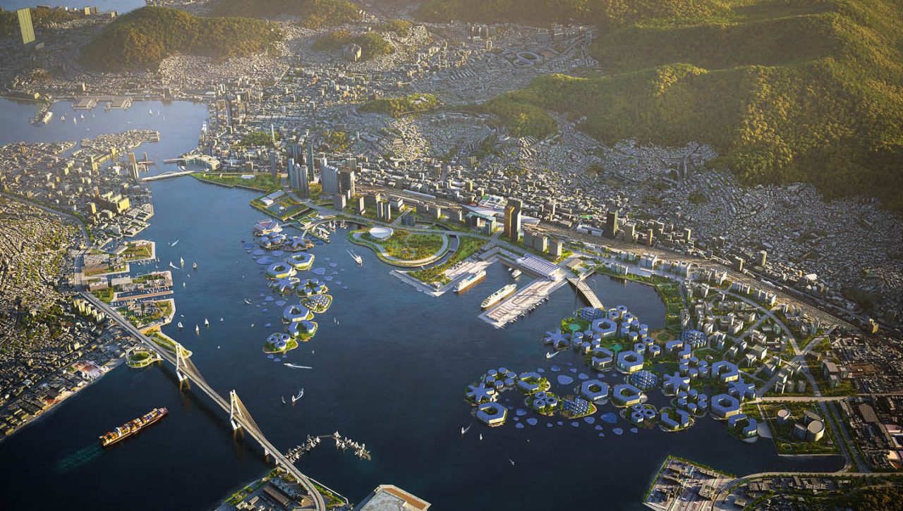 OCEANIX、聯合國人居署(UN-Habitat)和釜山廣域市,聯手設計一座能夠適應海平面上升的漂浮城市。OCEANIX Busan施工計畫於4月26日在聯合國總部發表,將在韓國釜山建造世界上第一座永續漂浮城市原型。