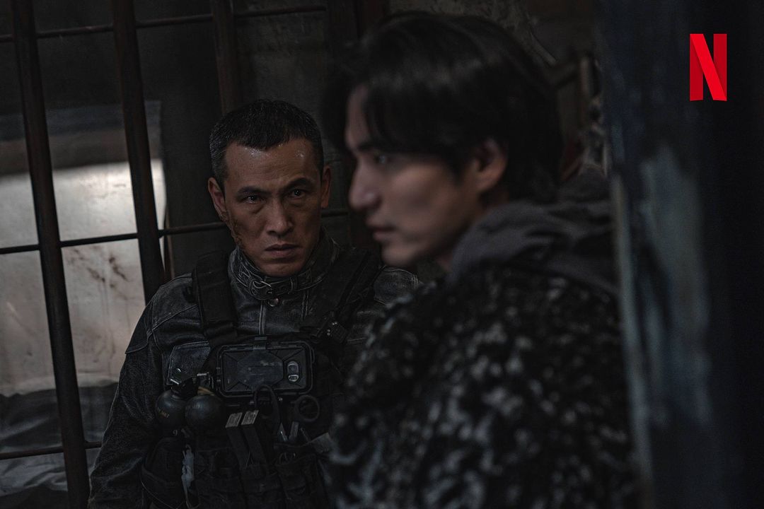 Sweet Home S3(L to R) Oh Jung-se as Dr. Lim, Yoo Oh-seong as Master Sergeant Tak in Sweet Home S3. Cr. Kim Jeong Won/Netflix © 2024