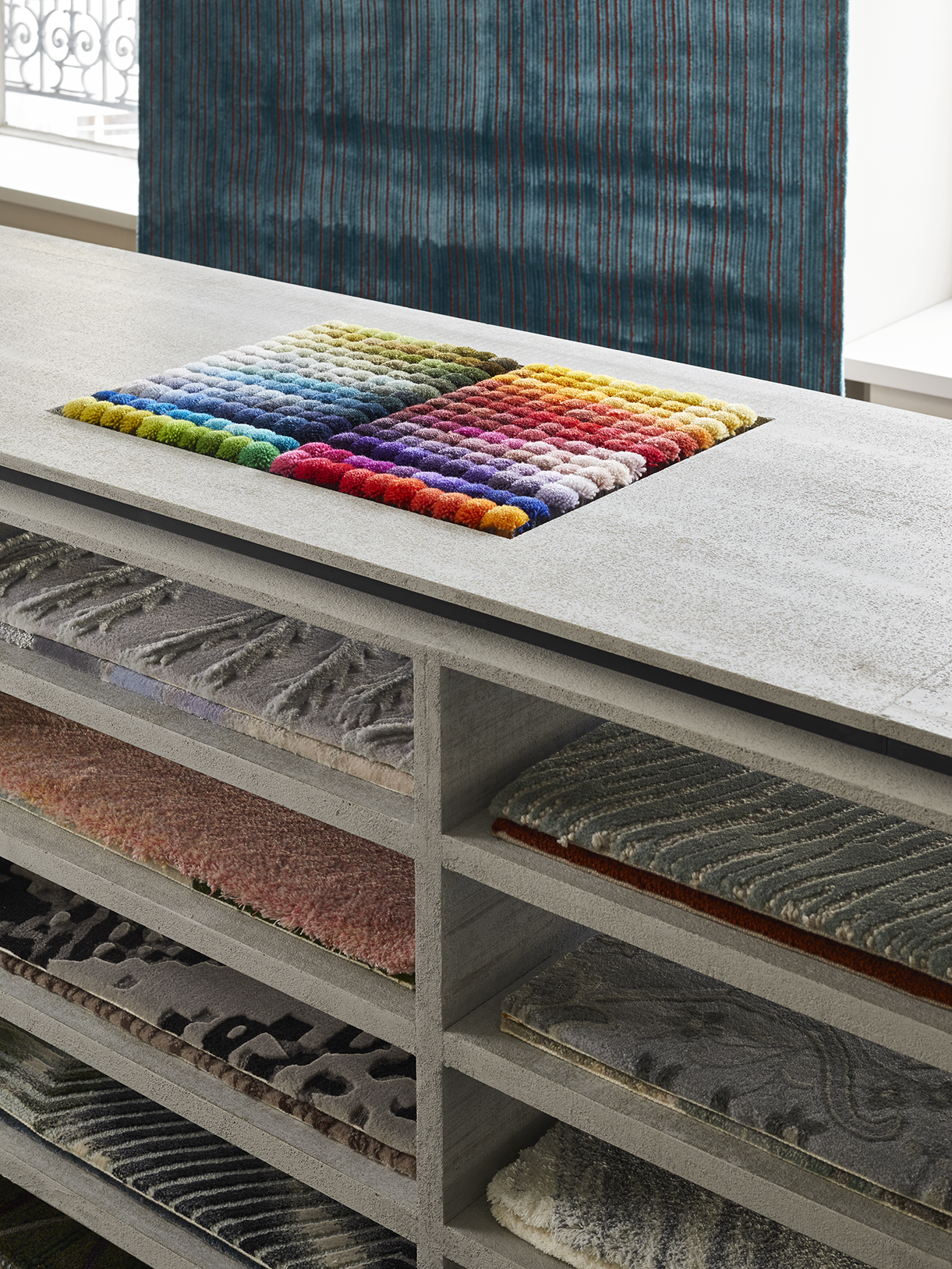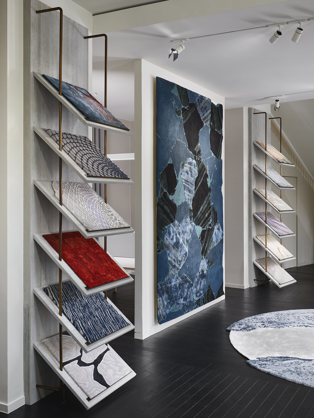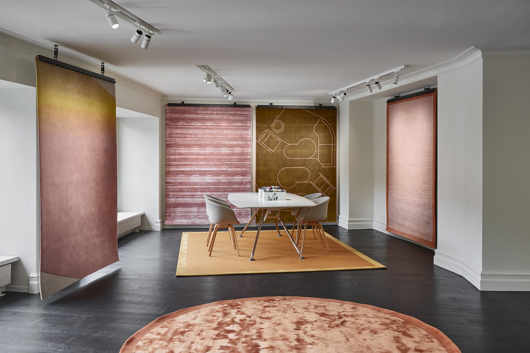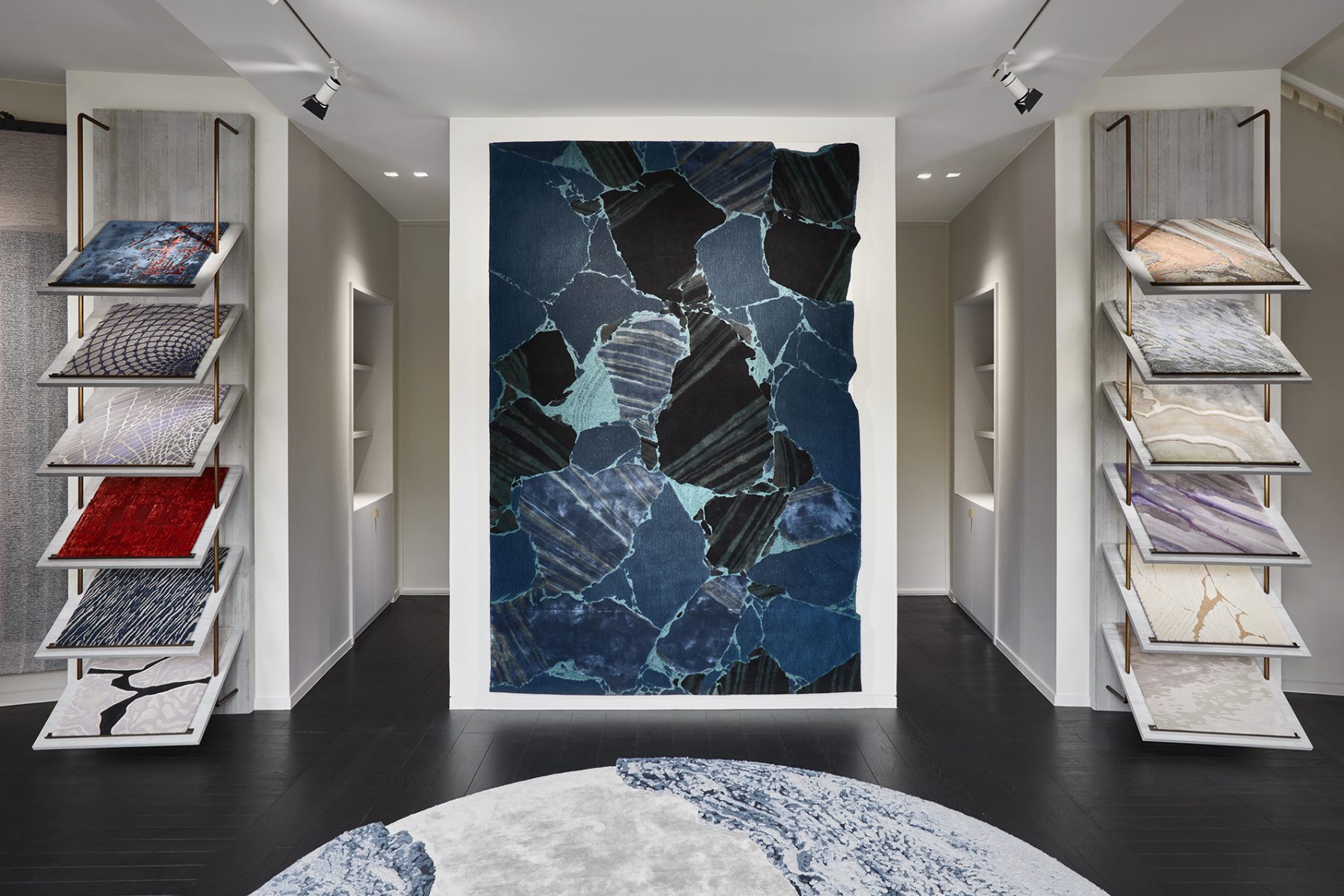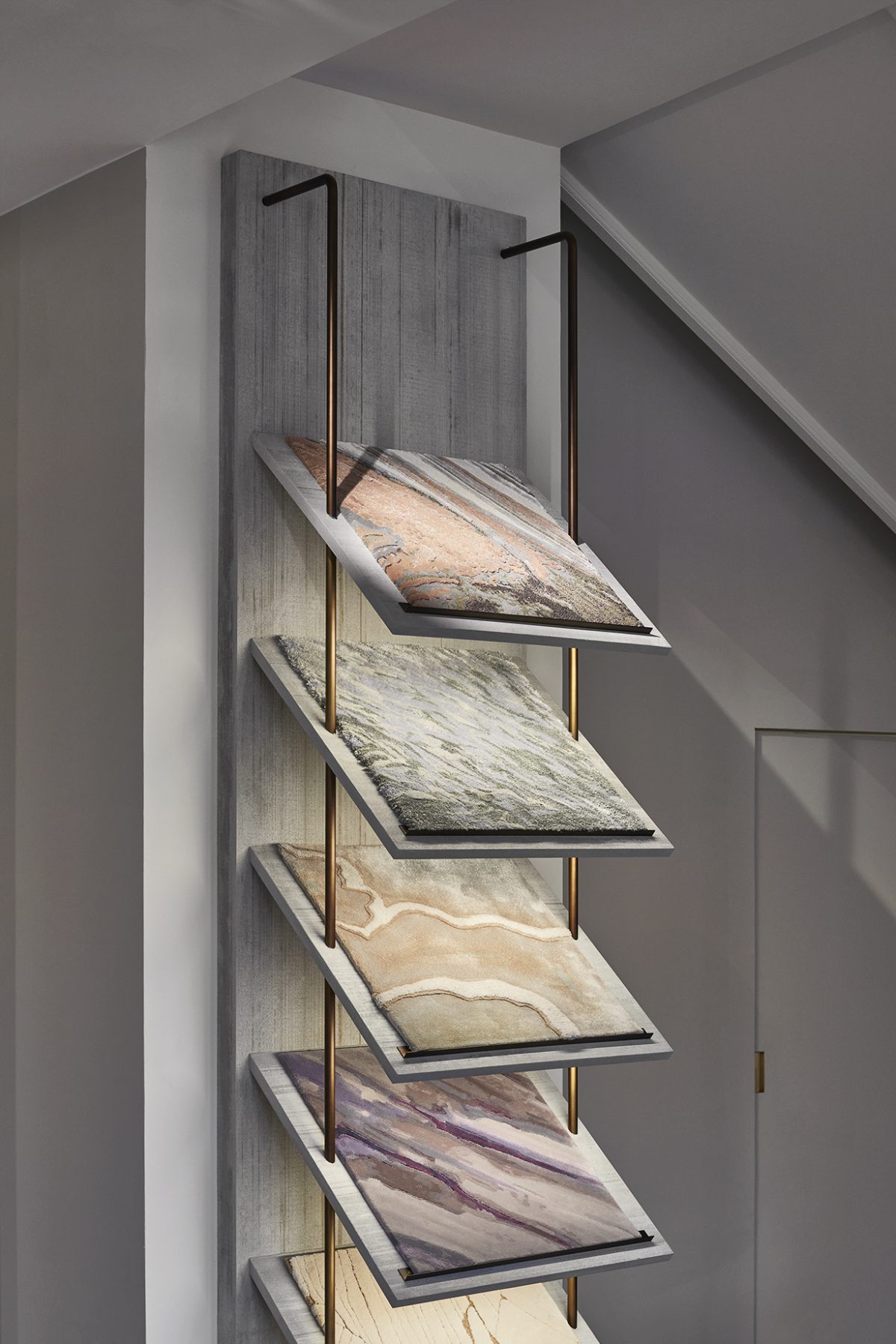 這個全新的展示廳位於高端布藝創作者社區的勝利廣場3號,而且一共兩層,當中設有專用的展覽空間,並且由著名室內設計師Elliott Barnes設計,特別是展示架以水泥(Placocem)的傳統硬件材料製成,因為Elliott Barnes認為,通過原始質感可以突顯出地氈的柔軟,加上各種定製的燈等照明設備,可以顯示出地氈的精緻。