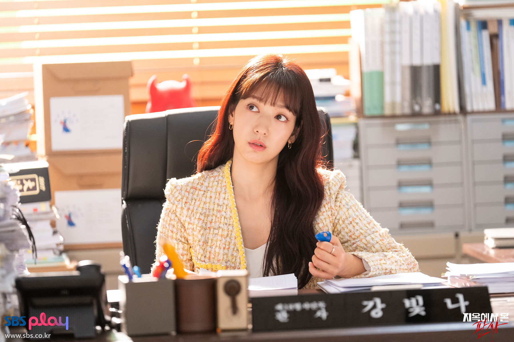 《來自地獄的法官》講述「姜光娜」(朴信惠 飾)曾是一位因經常輕判罪犯而為人詬病的溫柔法官。某天卻被一位來到人間執行任務的地獄惡魔附身,並肩負起將 10 名惡名昭彰且不知悔改的犯人帶回地獄的使命,自此她便性情大變,成為一位對犯人殘忍又毫不留情的惡毒法官。然而此時她卻遇上了性格截然不同的刑警「韓多溫」(金宰永 飾),來自盧峰警察局重案組的他充滿正義感與人情味,更會優先考慮受害者立場,為「姜光娜」身處的黑暗地獄帶來曙光,並逐漸產生微妙情愫。