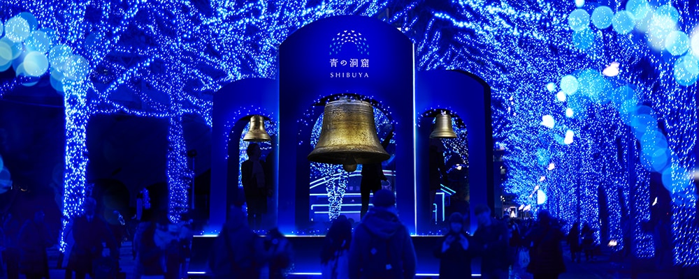 說到東京的燈光典禮,怎麼能錯過位於東京代代木公園到澀谷公園的超長燈飾——「青の洞窟」?公園裡面的櫸樹都掛上了約60萬顆的藍色燈飾,一到晚上就會形成藍海。今年還有幸運鐘「FORTUNE BELLS」登場,在這條藍海樹徑下行走,這種浪漫令其成為全日本人氣第一的聖誕旅遊點。