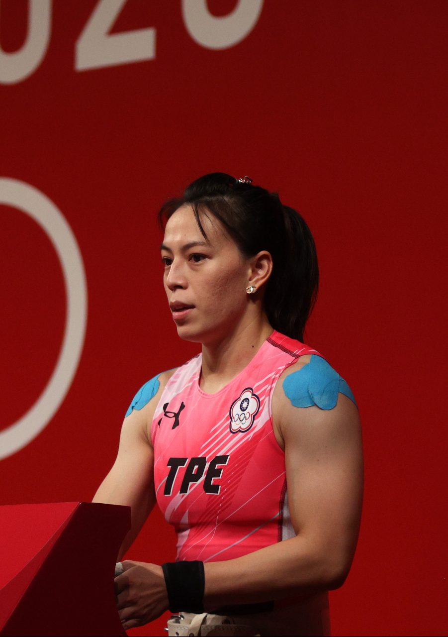 TOKYO, JAPAN - JULY 27: Hsing-Chun Kuo of Team Chinese Taipei competes during the Weightlifting - Women's 59kg Group A on day four of the Tokyo 2020 Olympic Games at Tokyo International Forum on July 27, 2021 in Tokyo, Japan. (Photo by Chris Graythen/Getty Images)