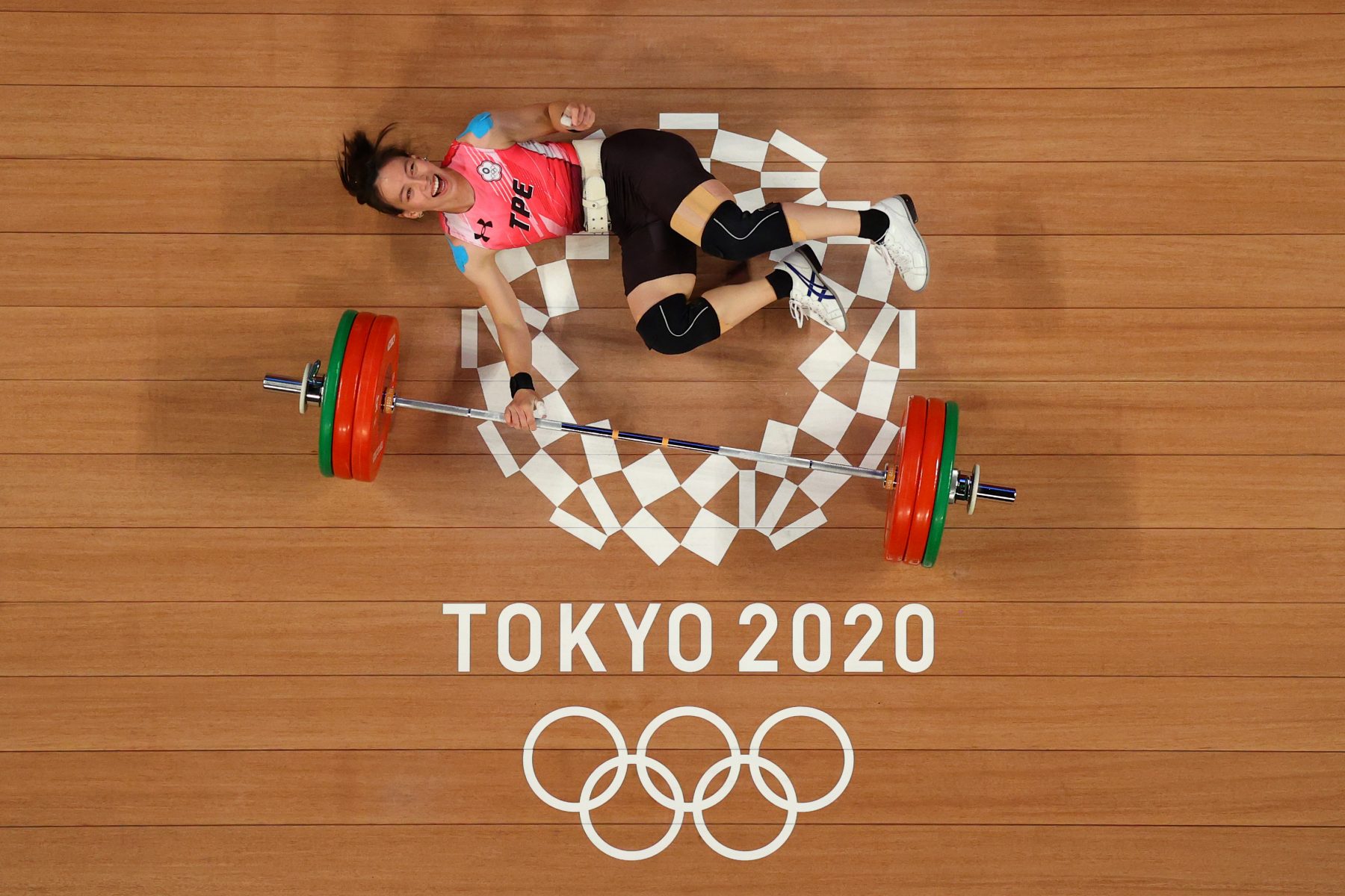 TOKYO, JAPAN - JULY 27: Hsing-Chun Kuo of Team Chinese Taipei competes during the Weightlifting - Women's 59kg Group A on day four of the Tokyo 2020 Olympic Games at Tokyo International Forum on July 27, 2021 in Tokyo, Japan. (Photo by Chris Graythen/Getty Images)