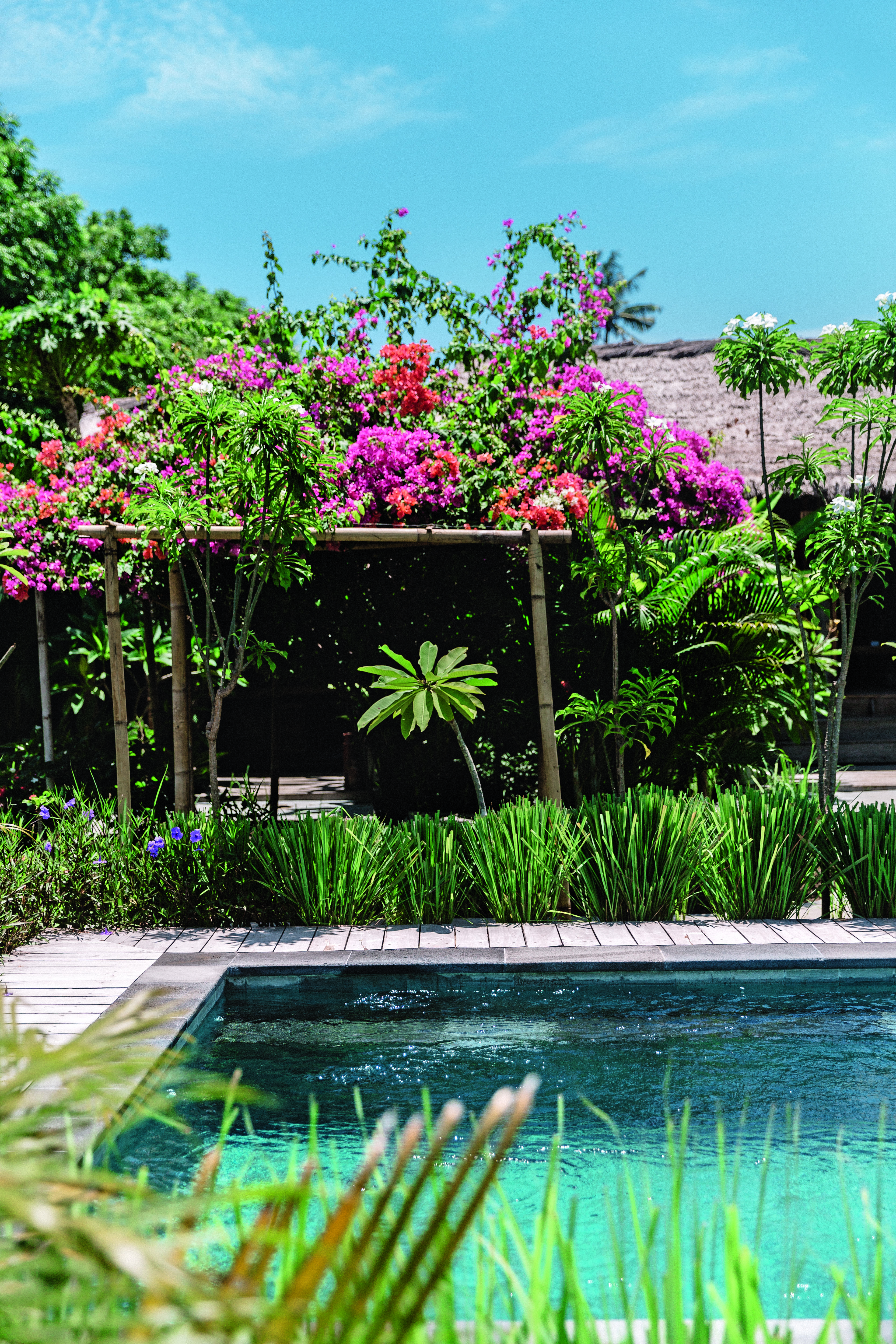 吉利島上的植物繽紛綻放,夜裏爭妍鬥麗:腰果、香蕉和粉紫色的簕杜鵑,紅色小鳥在乳樹靜休,其中馬努西亞杜尼婭綠色旅館(Manusia Dunia Green Lodge)的花園更美得像倫敦的皇家植物園邱園(Kew Gardens),池邊種有茉莉和雞蛋花。 吉利島上的街巷跟印尼大部分街道無異,盡是整列樓房,如此公開的慢活,人們過得不亦樂乎。走進其中一戶人家,我獲奉上大小如無花果的蛇皮果,紅褐色表皮下的果肉新鮮脆嫩,味道甘甜。一天慢慢過去,天色與情調也隨之而改變,聚滿珊瑚石的海岸小徑若隱若現,沙色也變得近乎暗黑。
