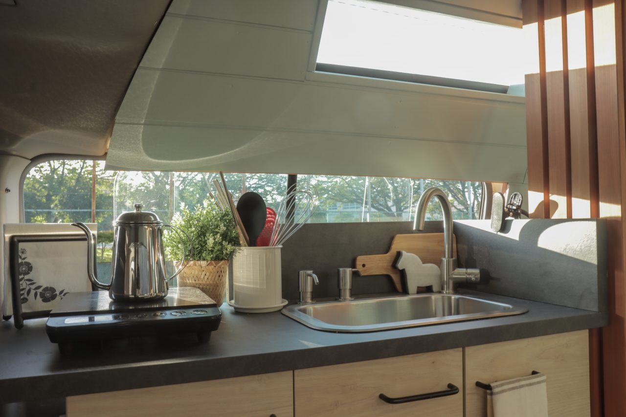 在家中可以依賴家人幫忙,但車中泊得靠自己解決一切生活所需。要打造 Dream House 樣樣也需要錢,剛畢業的芽依善用網絡力量讓夢想成真,「那時候沒甚麼錢,於是在網上發起眾籌,最終籌得 120 萬日元!動手改造初期,在 YouTube 找不同的教學影片去學,其後認識了其他車中泊的朋友,開始互相交流、幫忙。」她的「家」以柔和的粉嫩色調為主,簡約的設計善用每寸空間,睡床、沙發、小茶几及日常必需品一應俱全。由構思到完工,芽依花了大約半年時間,製作和裝嵌等則用了 37 天,看似極速但過程困難重重,最困難的就是需要符合規格,日本對改裝車有很多規限,也很仔細,因此駕駛人士需要不斷作出改動以符合要求,「我曾因為兩次車檢不合格而哭了(笑) 真的壓力很大!」