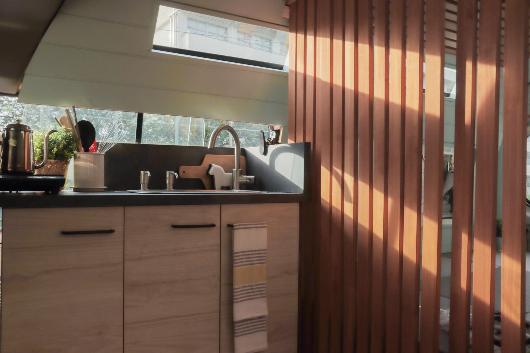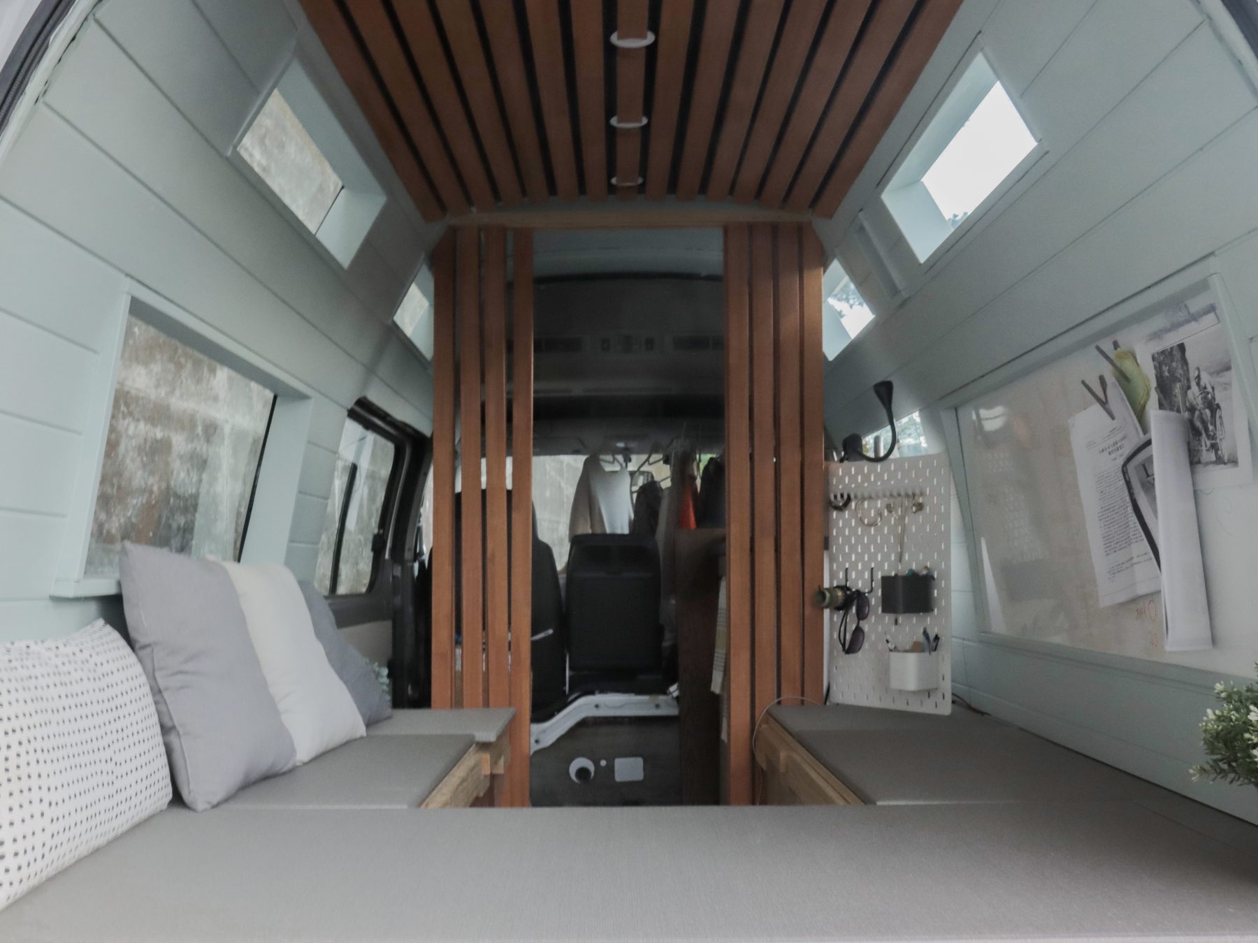 在家中可以依賴家人幫忙,但車中泊得靠自己解決一切生活所需。要打造 Dream House 樣樣也需要錢,剛畢業的芽依善用網絡力量讓夢想成真,「那時候沒甚麼錢,於是在網上發起眾籌,最終籌得 120 萬日元!動手改造初期,在 YouTube 找不同的教學影片去學,其後認識了其他車中泊的朋友,開始互相交流、幫忙。」她的「家」以柔和的粉嫩色調為主,簡約的設計善用每寸空間,睡床、沙發、小茶几及日常必需品一應俱全。由構思到完工,芽依花了大約半年時間,製作和裝嵌等則用了 37 天,看似極速但過程困難重重,最困難的就是需要符合規格,日本對改裝車有很多規限,也很仔細,因此駕駛人士需要不斷作出改動以符合要求,「我曾因為兩次車檢不合格而哭了(笑) 真的壓力很大!」