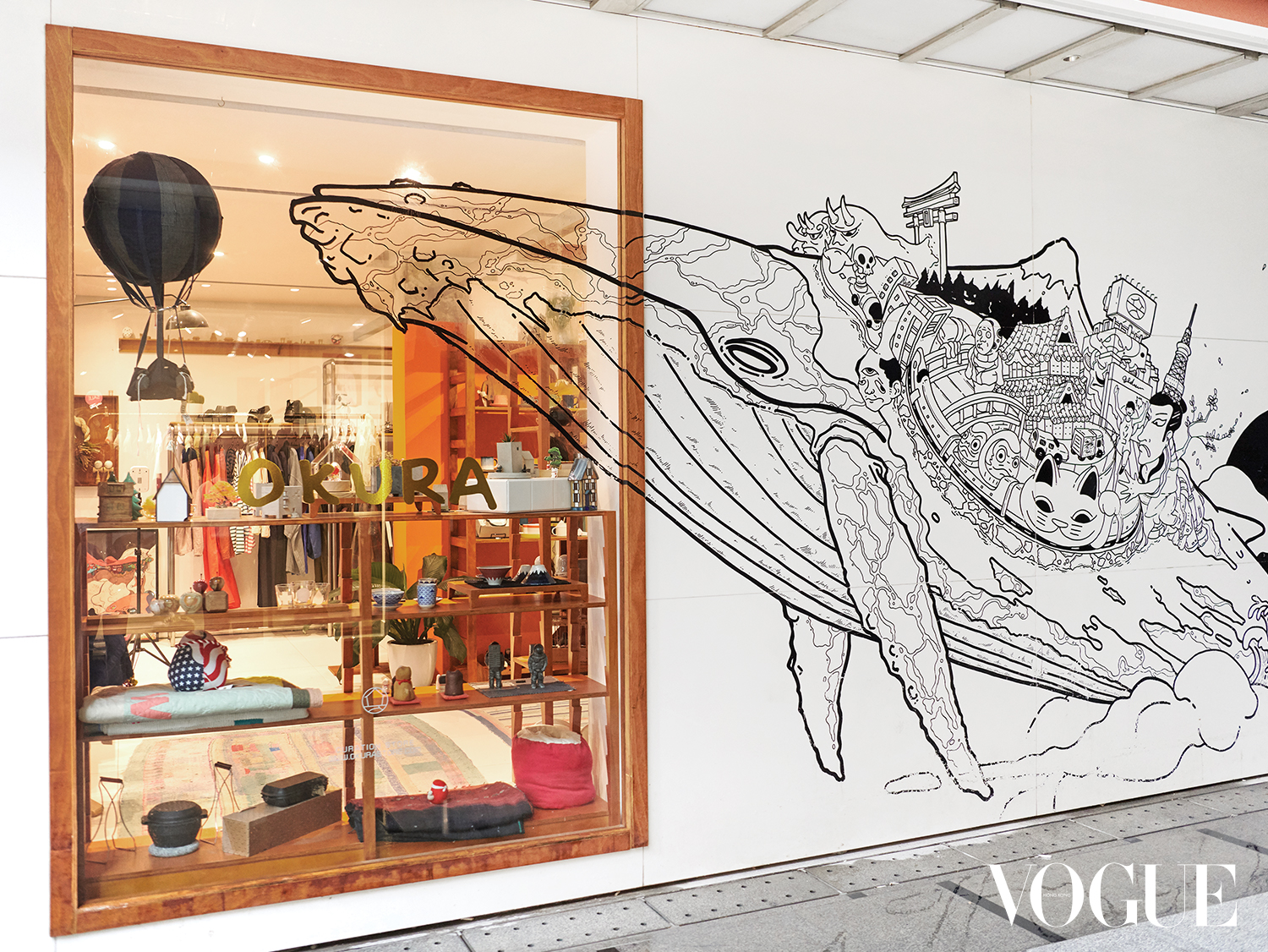 被問到夫妻檔經營生意會否有所紛爭的時候,Franke 反而表示如何讓大家享受實體店購物才是其中一樣困難的地方,「現在網購生態發展得太快,坦白說,他們有甚麼沒有見過?要讓他們對一件單品感到新鮮是越來越難,甚至會先試穿然後才回家上網購物,所以入貨時必須要更為謹慎,同時推出了網店,希望讓更多人可以認識我們。」面對經營的問題之際,他們亦不忙扶植本地設計師,從門外的鯨魚藝術品與櫥窗的有趣畫作都是來自香港藝術家的手筆,Frankie 感性表示:「因為自己開業好幾年,過去認識一些本地設計師,所以盡一點綿力,有時讓他們的設計在 Okura 出售,反正大家都是愛時裝。」與 Frankie 聊天的時間本以為過得很快,但訪問完後看回手錶才發現原來已經頗久了,大概是透過他熱血的眼神,以及振振有詞的理念會讓人有一種衝動想聽下去,又或許是想念日本旅行的關係?來到 Okura 除了可以尋寶之外,想不到還能尋回那股在日本購物的快樂時光。