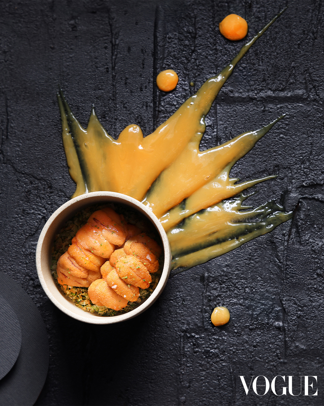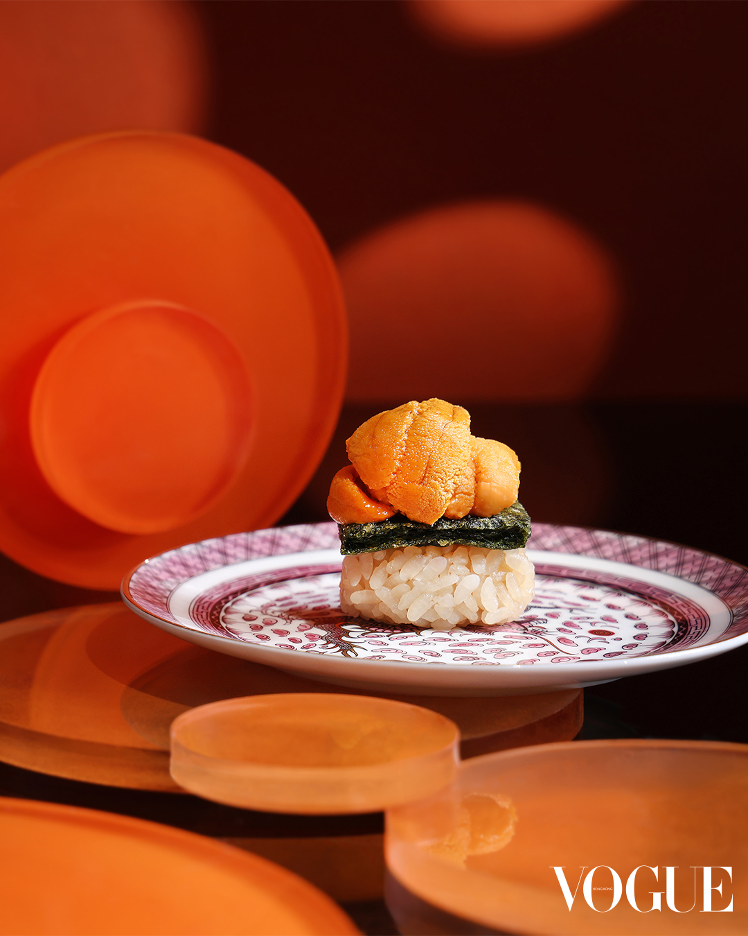 東京米芝蓮一星 Udatsu Sushi 以其新時代的壽司製作方式而聞名,現在香港開設了第二家店。與高檔私人畫廊不同,餐廳光滑的混凝土牆上懸掛着不同藝術家的作品,這與 omakase 櫃檯上展現的當代烹飪藝術相得益彰。主廚兼老闆 Hisashi Udatsu 的創作植根於傳統的壽司藝術,同時自豪於對卓越的追求和自己獨特的創造力。主廚 Udatsu 的海膽壽司是對傳統海膽壽司的改造,大量紫海膽和馬糞海膽放在精心炸製的紫菜上,看似簡單。「靈感來自於我去吃天婦羅時的一幅畫面,」他說。「你可以享受壽司米飯的蓬鬆口感、炸紫菜的酥脆溫暖和海膽的清涼奶油味的結合。溫度的對比和三種不同的紋理創造了獨特的體驗。北海道的海膽含有豐富的海帶,與紫菜非常相配,是我們原創海膽菜餚的完美配搭。 」