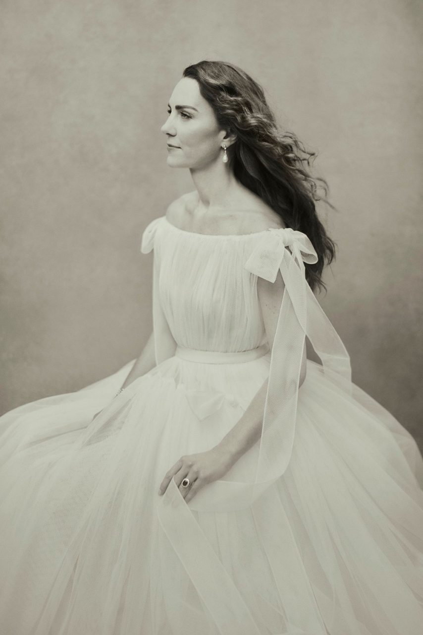 與此同時,這張照片亦令人回想起凱特王妃 Kate Middleton 在自己40歲生日之際發布的肖像照。只見她身穿來自最愛品牌之一 Alexander McQueen 的紅色單肩禮服,還佩戴了由英女王二和戴安娜王妃都曾配戴過的精緻珠寶。
