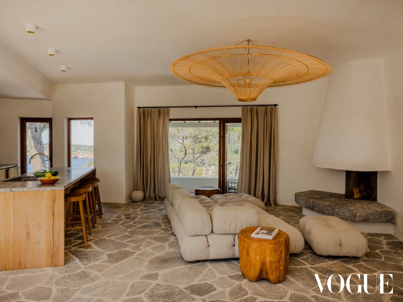 藤枝、木材和石頭等天然質樸的元素充斥了整個空間。「我心中有一種非常獨特的審美觀,我想盡可能地融入當地的材料。」 Victoria 解釋道:「我從 Atelier Vime 找到了這些引人注目的藤製燈具,他們專門製作最華麗的訂造藤製燈具、家具,以及復古家品。」地板由當地採購的天然石材製成,與數百年前老城區 Dalt Vila 使用的石材完全相同。室內和室外的飾面都保持在最低限度整修,以 swirling greens 和磚紅色的赤土色調為住宅注入活力,同時亦是向住宅周邊鬱鬱蔥蔥的松山和懸崖致敬。