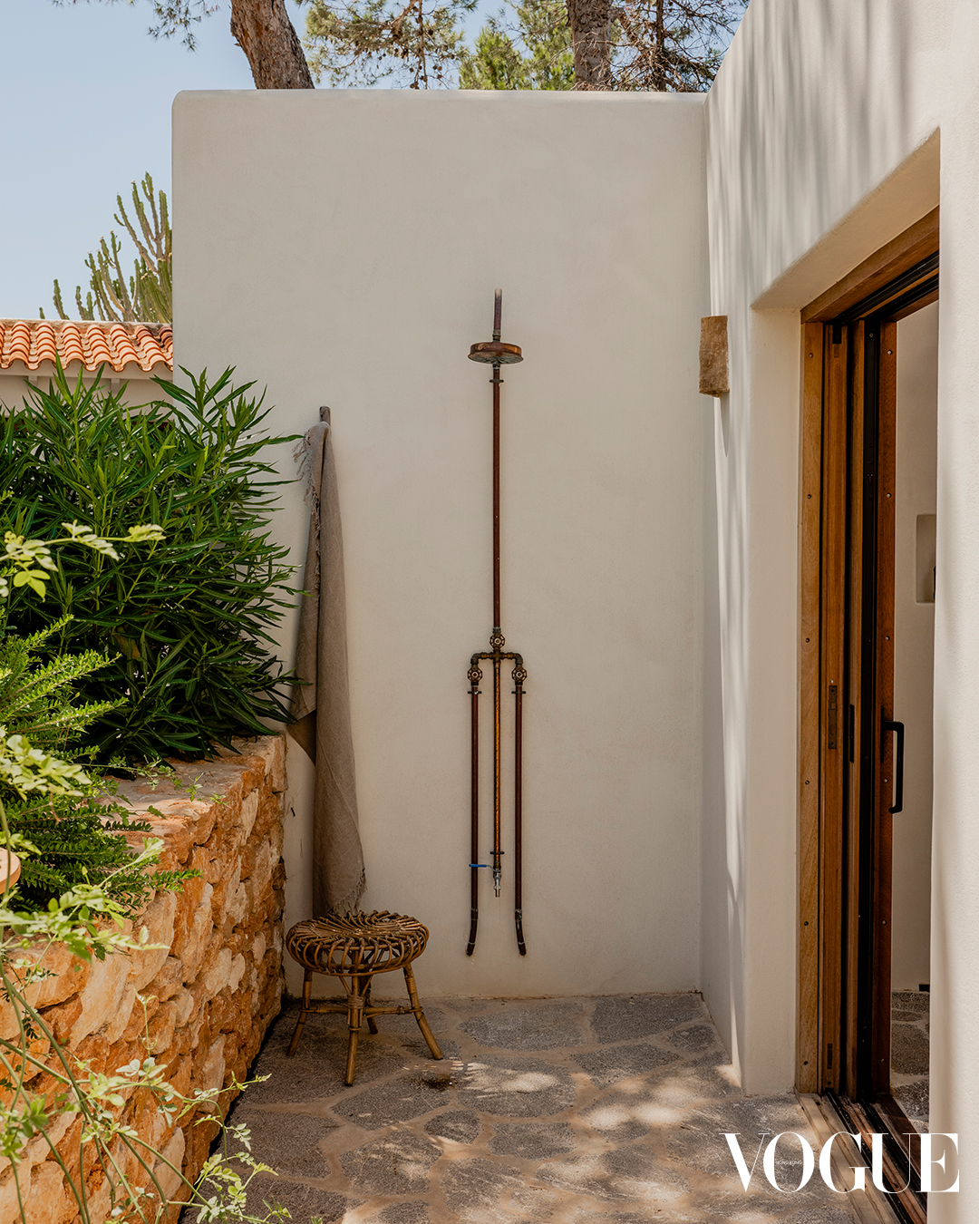 為了好好融入 Ibiza 陽光充沛的生活,Victoria 在裝修期間佈置了幾個室外露天用膳及嬉戲的空間。「我還花了很多時間及心思去改造個花園,令它成為這個家的一個重點特色,又嘗試將自然環境的景物接連進屋中,同時也將屋中的觀感投射到這裏的自然環境。」有佔地相當大的面積給 Victoria 做設計,她最終做了兩個用膳宴客的空間、一個備有柴火 Pizza 烤爐及 BBQ 位置的室外廚房,還有在泳池旁邊的一個寬闊陽台。來自巴黎的景觀設計師 Arnaud Casaus,為 Victoria 起用了許多本地原生植物,令這莊園與 Ibiza 的自然環境更加融和。