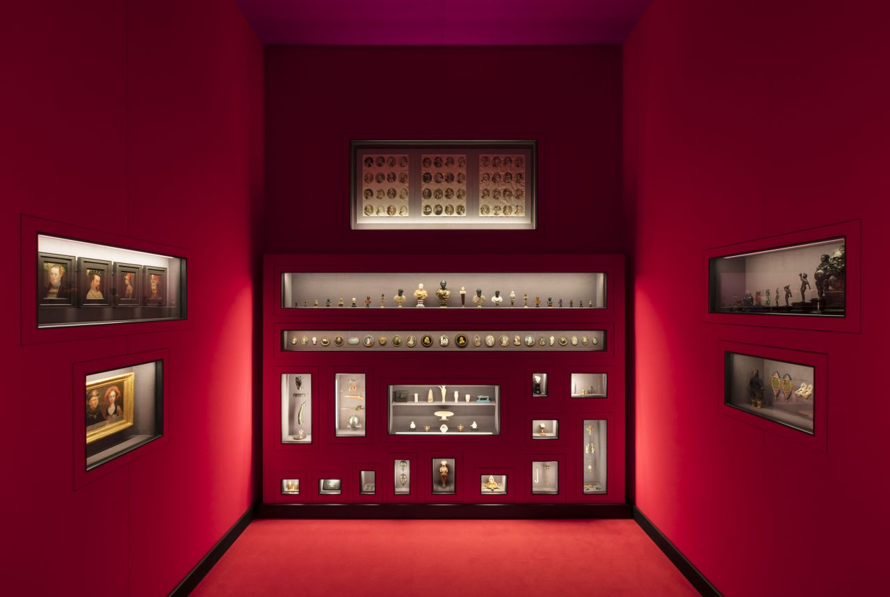 整個展覽的視覺佈局取材自被視為世界最古博物館的安布拉斯城堡的Lower Castle,參照意大利宮廷設計專為收藏藝術遺產為設計,充滿神秘尋寶的氣氛;加上Wes Anderson的視覺風格,展館通過顏色有明顯的分佈。