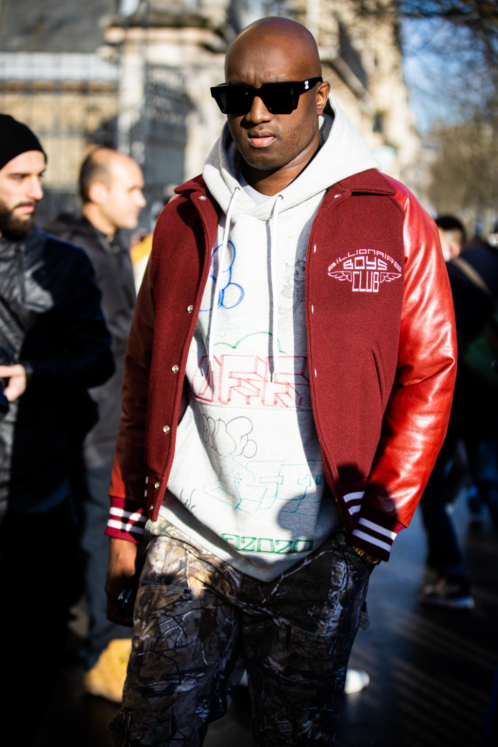 Street Style - Paris Fashion Week - Womenswear Fall/Winter 2020/2021 : Day Three PARIS, FRANCE - FEBRUARY 26: Virgil Abloh, wearing a white printed sweatshirt and red jacket, is seen outside Lanvin, during Paris Fashion Week - Womenswear Fall/Winter 2020/2021 : Day Three on February 26, 2020 in Paris, France. (