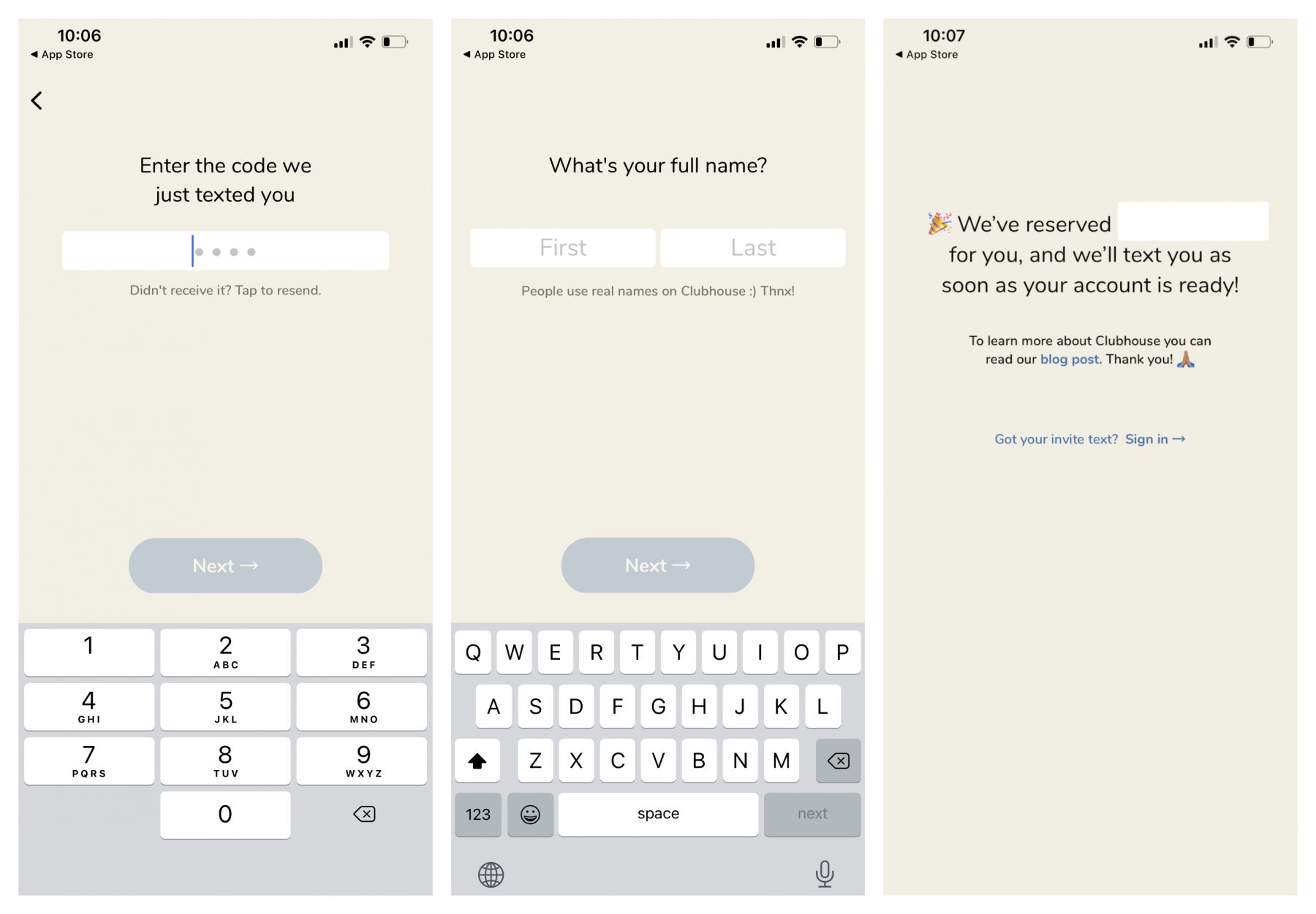除了只能用語音來交流,Clubhouse 最神秘的地方就是參加方法。暫時還在測試階段,需要擁邀請碼才能使用這個app,因此出現了不少人到處詢問Clubhouse邀請碼的現象,亦有人以高價放售邀請碼。若沒有邀請碼,也能先下載app,預留想用的賬號名稱。而就算加入了 Clubhouse,每個帳號也只有兩個邀請碼,所以尤為珍貴。也有一種方法是預留了名稱,加入了自己的電話號碼後,Clubhouse 會提醒大家身邊已經在玩這個app的人,讓他們邀請大家加入。