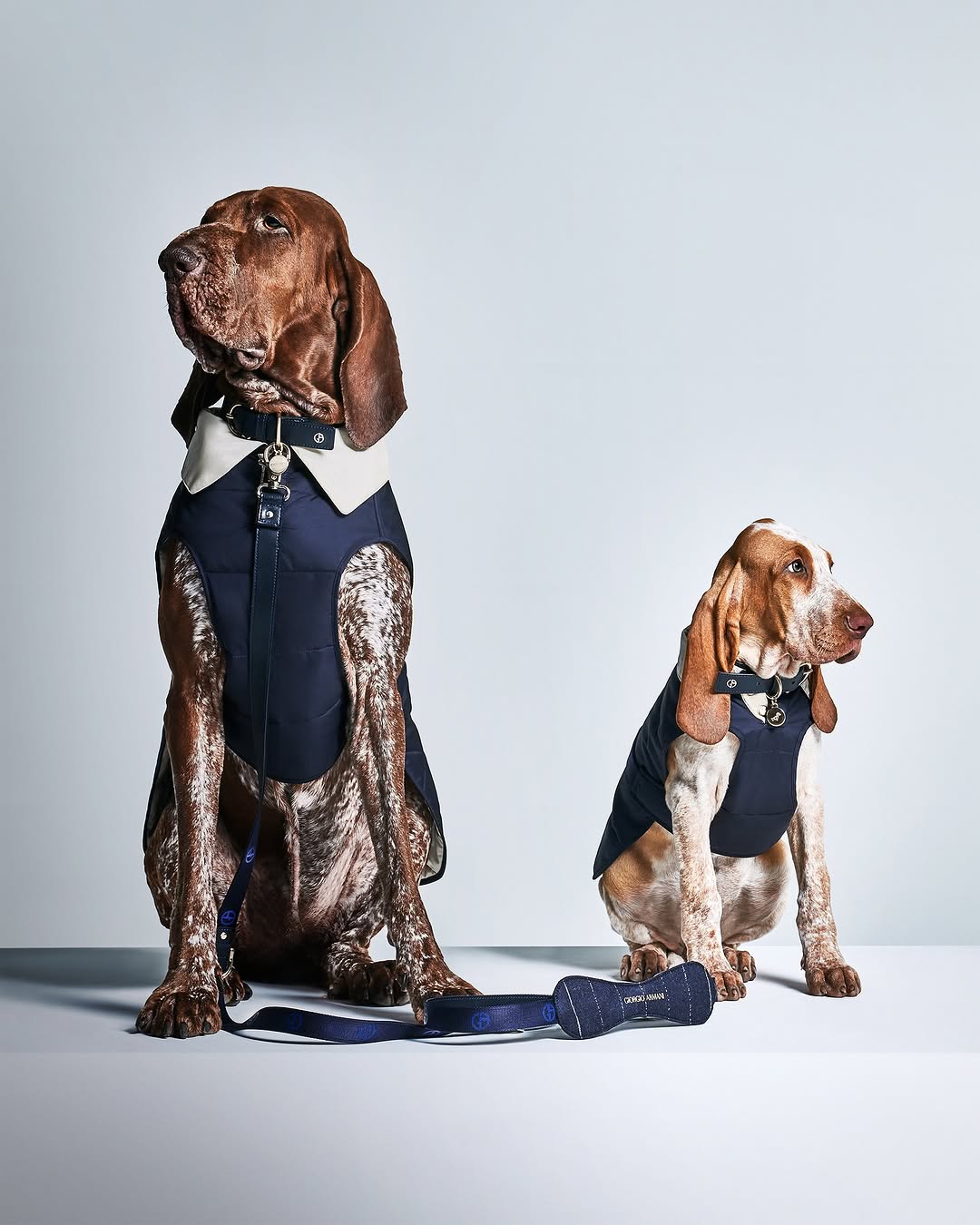 在晚宴場合,打扮優雅得體的毛孩會成為全場最加分的plus one。Giorgio Armani與意大利高級寵物品牌Poldo Dog Couture推出的聯乘系列,以紳士形象推出一系列寵物衣飾,是相當不錯的選擇。藍色雨衣加了恤衫領設計,多了一分精緻,防水面料更兼具功能性,日常也有極高著用度。配上Barbour的煲呔,立即變身為小紳士,把造型昇華至另一層次。