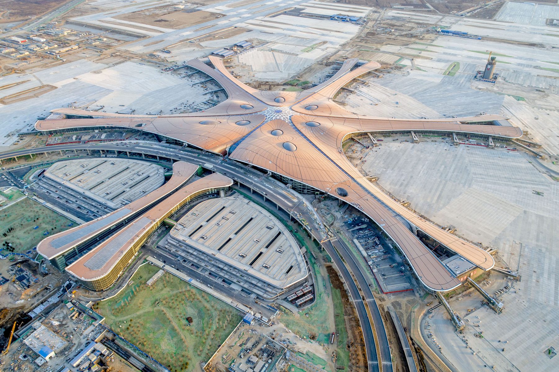 足足利用四年的時間所建立的全新北京大興國際機場,預計每年將有4,500萬個乘客,每小時可處理300次起飛和降落。機場外型如同鳳凰般展翅高飛,而內部結構設計主要一個中心為樞紐點,六個分支點以放射形狀向外伸延的「碼頭」供乘客上落;同時以造價120億美元建設七條跑道,以應付一億個遊客出入。
