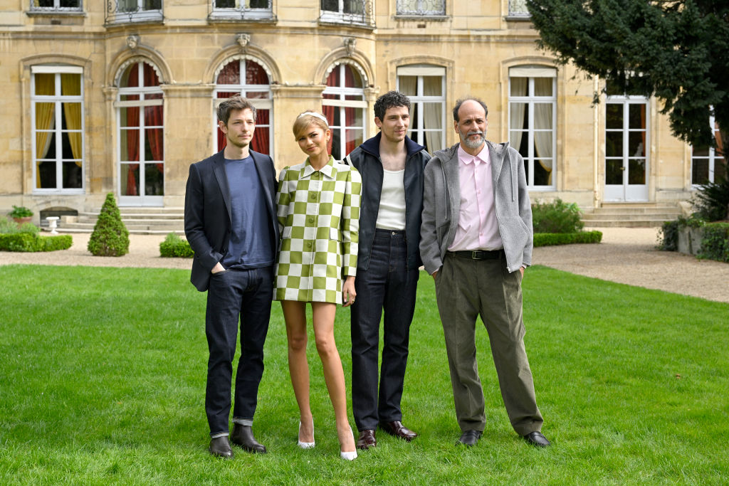 PARIS, FRANCE - APRIL 06: (L-R) Luca Guadagnino, Josh O'Connor, Zendaya Coleman and Mike Faist attend the "Challengers" Paris Photocall at Hotel de Crillon on April 06, 2024 in Paris, France. (Photo by Marc Piasecki/WireImage)