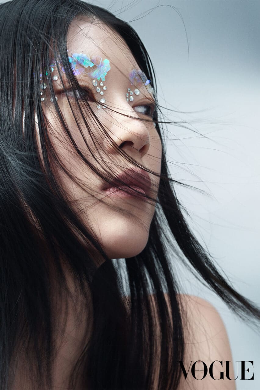 要為面部「戴上」珠寶,最重要是一個乾淨啞面底妝,因為如果底妝過於亮澤再加上飾品的反光效果,會令妝容過於複雜,而且突出不了閃石的效果,所以底妝成為了「珠寶妝」之中的關鐽。另外為了令妝容焦點集中於閃石上,其他的彩妝部分成為了點綴,例如如果閃石是貼於眼妝,那面部就不要再塗閃粉,否則會令妝感失去平衡,所以除了底妝的重要性外,今季閃石妝的重點是講求「平衡」,把重點單純放於閃石上來做出時尚型格感。