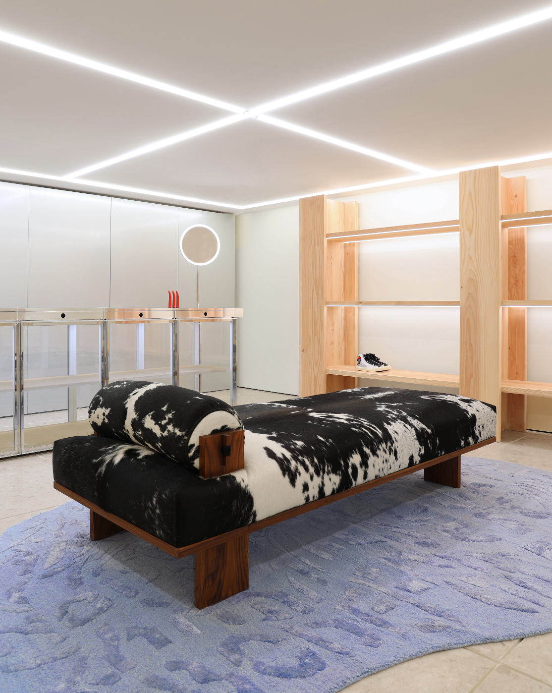 Sigurd Lewerentz 的風格對建築設計界影響深遠,打破舊有古典審美觀,踏進現代美學的年代,這份破格故我的個性,或多或少已植根在 Ben Gorham 的內心。繼震撼眼球的磚牆後,Ben Gorham 特意在店內放置大量設計家具,包括甫踏店內就迎來一張色彩奪目的漆面機械桌子、彩妝產品專屬的鍍鋅金屬櫃、以洋松製成的手袋展示架等,以繽紛色彩映照香港的活力,配合奢華的意大利水磨石地板、白色牆身和畫廊似的燈光,與現代感覺家具形成鮮明對比。從店內外的精緻設計,不難看出 Ben Gorham 除了善於把腦中的經歷和畫面化成香水,更可透過店內的每個角落中呈現出來。