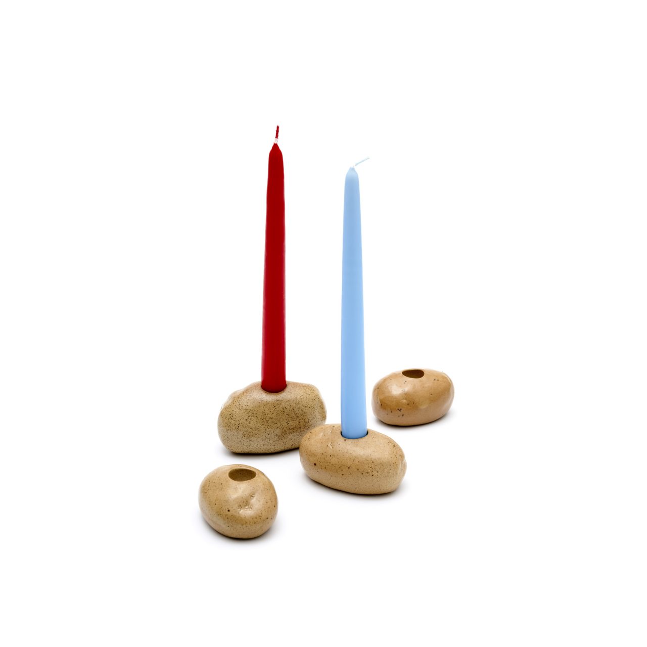 馬鈴薯外型的陶瓷燭台與手製蜂蠟蠟燭相映成趣