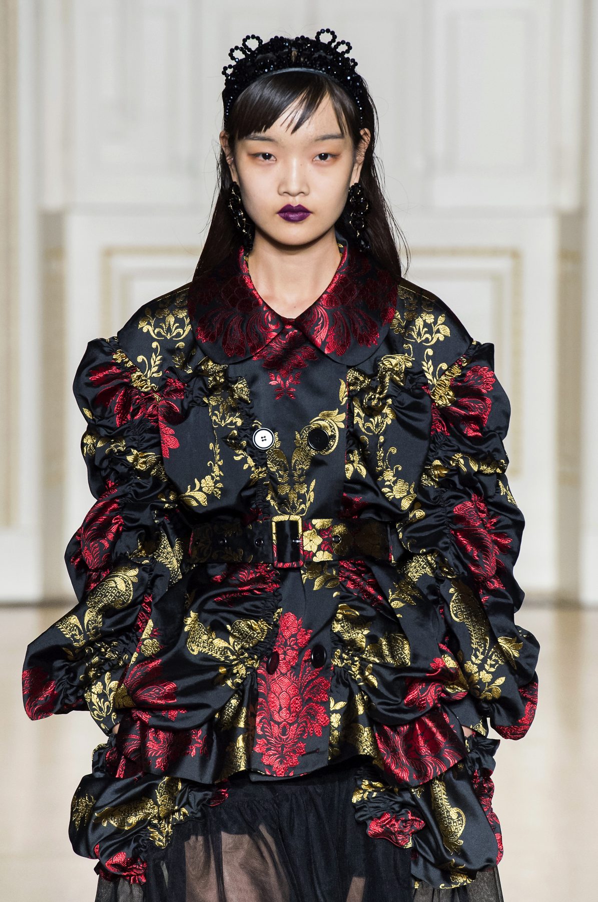 雖然每逢秋冬亦會流行冷調妝容,酒紅、紫色等大行其道。然而這次的「浪漫」屬於歌德式,仿如提點大家玫瑰是帶刺的植物,可遠觀而不能觸碰,是一種具有距離感的妝容。好像Simone Rocha以黑色唇膏表達當中的神秘感,啞緻不含一點亮澤的唇妝,更顯冷酷。