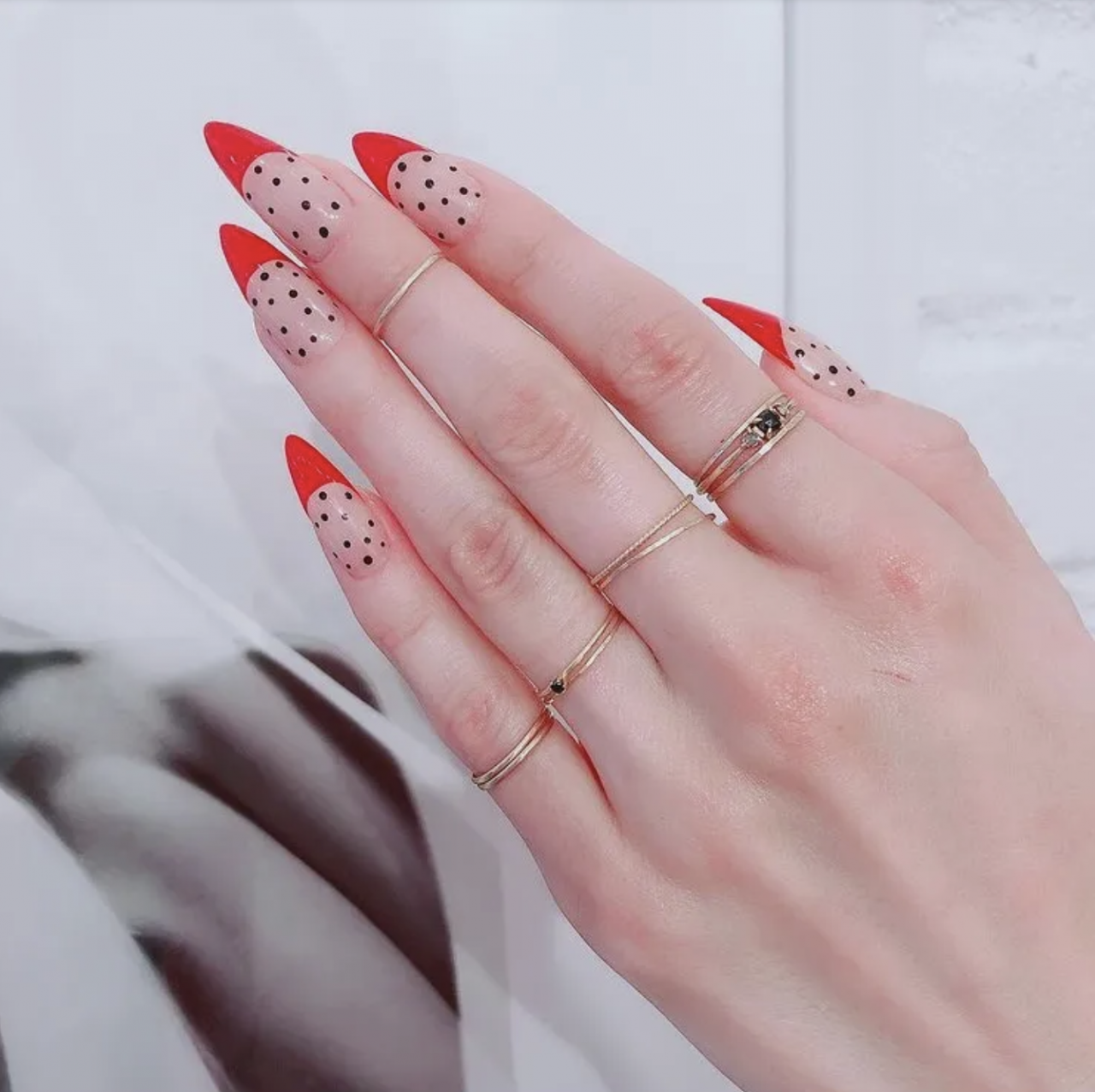 如果你從零開始並且需要靈感,Michelle Humphrey會推薦一部令人毛骨悚然的季節經典。 「從紅色到血紅色的漸層色是你在家中可以實現的最簡單但有效的美甲之一。 打造這種效果所需的只是一塊化妝海綿」。要打造這種效果,只需使用紅色作為底色,再把海綿的下半部塗上更深的紅色,然於在上半部塗上相同的底色,然後將整個海綿輕輕塗抹在指甲上以獲得效果。 清理所有手指邊,並塗上一層光滑的面油」。