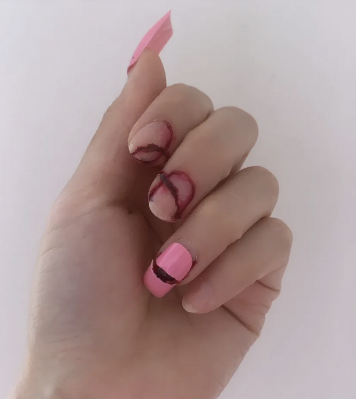 僅僅因為今天是萬聖節,並不意味著你必須全力以赴。 事實證明,尖叫的粉紅色鬼面看起來有點可愛。 「我最受歡迎的萬聖節設計通常是蜘蛛、網、《驚聲尖叫》等恐怖電影以及任何類似血的東西,」下東區MVZ Beauty Studio的創辦人和藝術家Marbles Valdez說道。