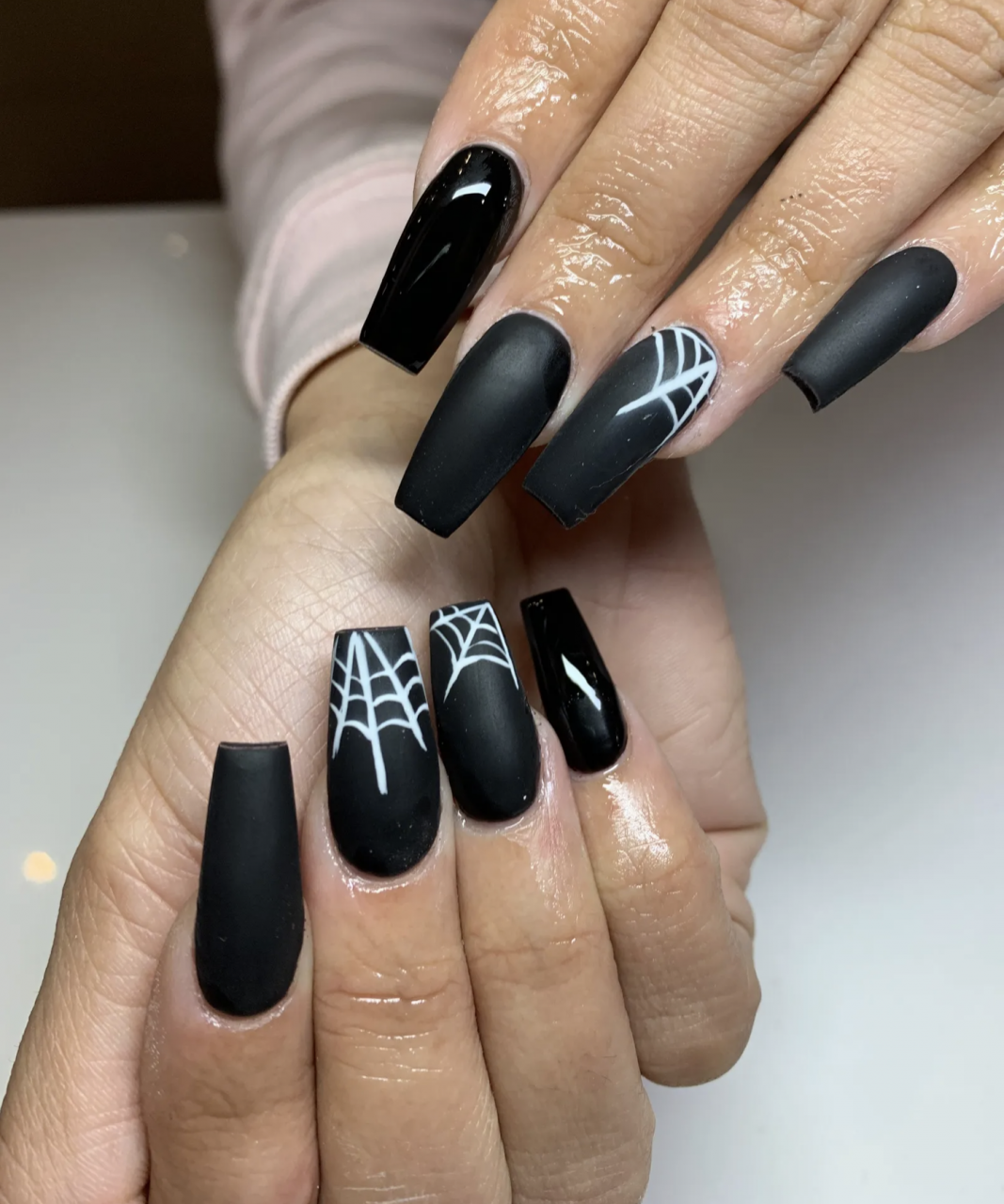 不知道從哪裡開始? 去尋找血-就是在你的指甲上。 「說到我最受歡迎的萬聖節設計,那肯定是血滴,」加州美甲師 Laysa Cazares 說道。 「我想說,我收到的前三個請求是血滴、蜘蛛網和施華洛世奇蜘蛛。黑色尖形甲肯定也適合萬聖節,但隨著方形變得超級流行,我有更多的客戶想要方形指甲」。