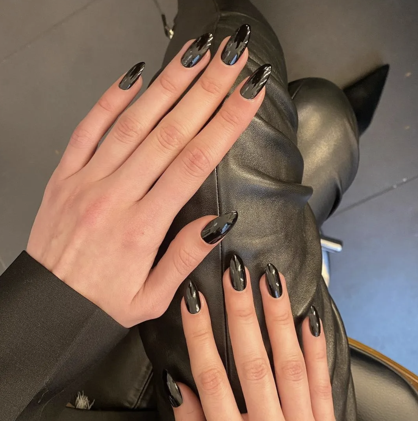 說到小眾的萬聖節設計,沒有人比Michelle Humphrey(更廣為人知的名字是 @nailsbymh)做得更好。 這位名人美甲師和美甲創意人士喜歡在陰森的季節跳出框框思考,這意味著她的設計既富有想像又別緻。 「顯然萬聖節是玩樂的季節,但我真的很喜歡讓它感覺更成熟,而不是顯而易見,」Michelle Humphrey說。「我的客戶不喜歡在指甲上搖晃南瓜或鬼魂,更可能是深色的元素,比如煙熏黑色漸變色、黑色閃光法式,或者看起來有點奇怪的東西,例如漏油」。