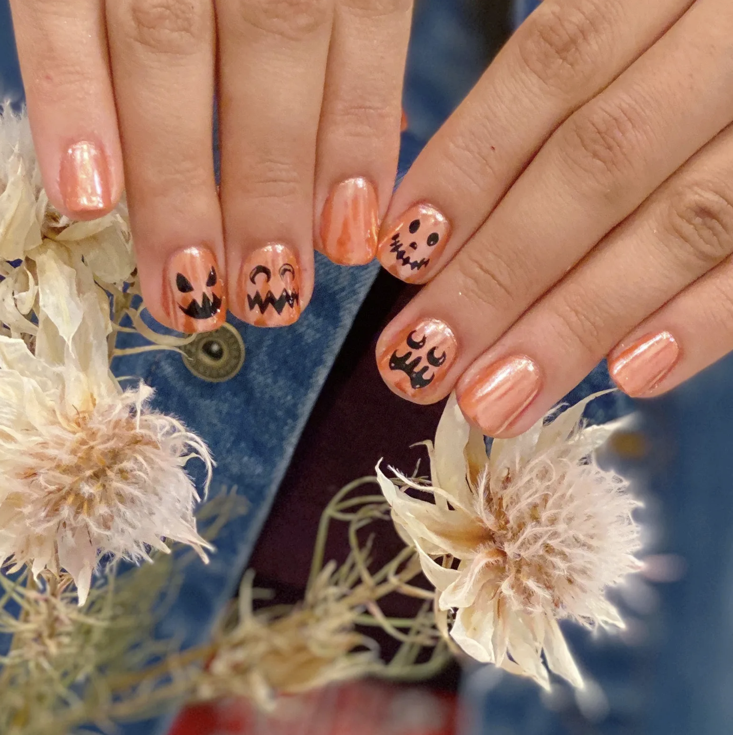 南瓜收好後,她有什麼延長美甲壽命的秘訣嗎? 就是追求抽象:「帶有有趣的怪異調色板的光環或噴槍指甲非常適合假期,並且在萬聖節結束後也絕不過時」!