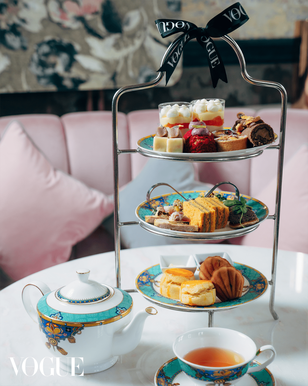 當日Madame Fù Grand Café精緻的場地佈置如同夢境,帶領我們探索美容界的全新境界。為了讓各位來賓享受愉悅的午後時光,還特別準備了精緻的春日下午茶,包含10款法式甜點搭配香醇的英式茶,當然少不了《VOGUE》Hong Kong的蝴蝶結,更增添一份優雅氛圍。