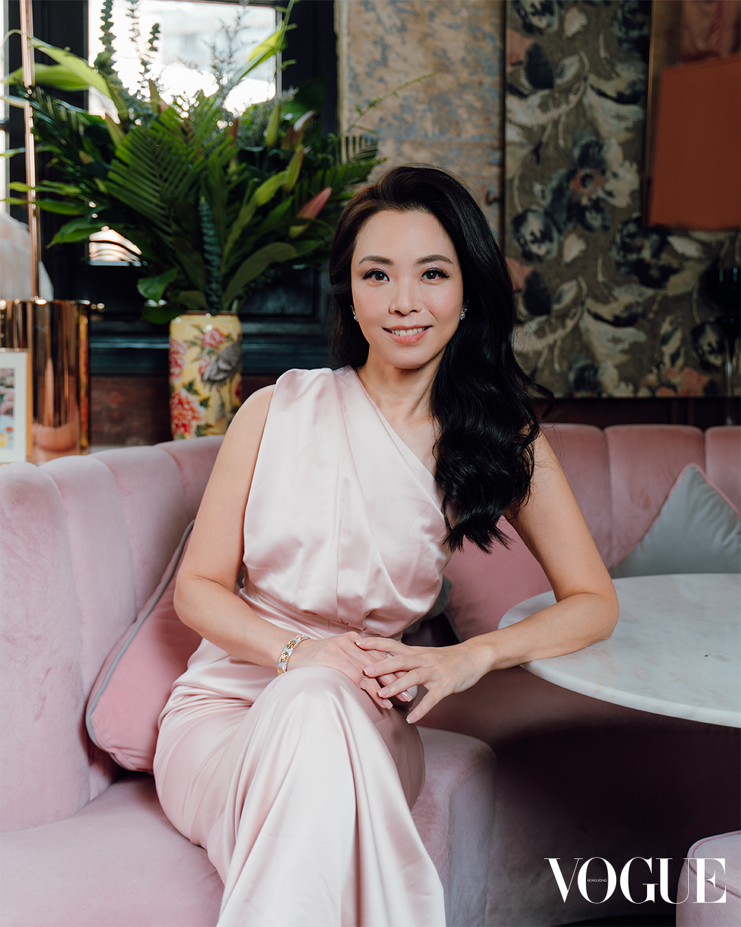 柳王明琪以粉色絲質連身裙出席活動