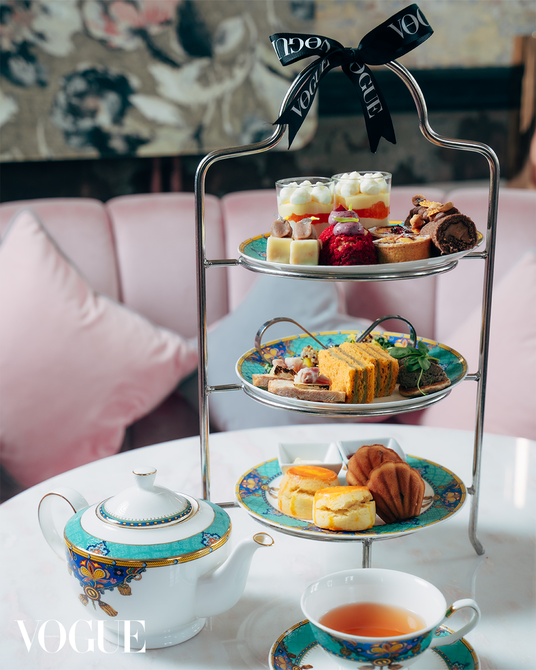 當日Madame Fù Grand Café精緻的場地佈置如同夢境,帶領我們探索美容界的全新境界。為了讓各位來賓享受愉悅的午後時光,還特別準備了精緻的春日下午茶,包含10款法式甜點搭配香醇的英式茶,當然少不了《VOGUE》Hong Kong的蝴蝶結,更增添一份優雅氛圍。