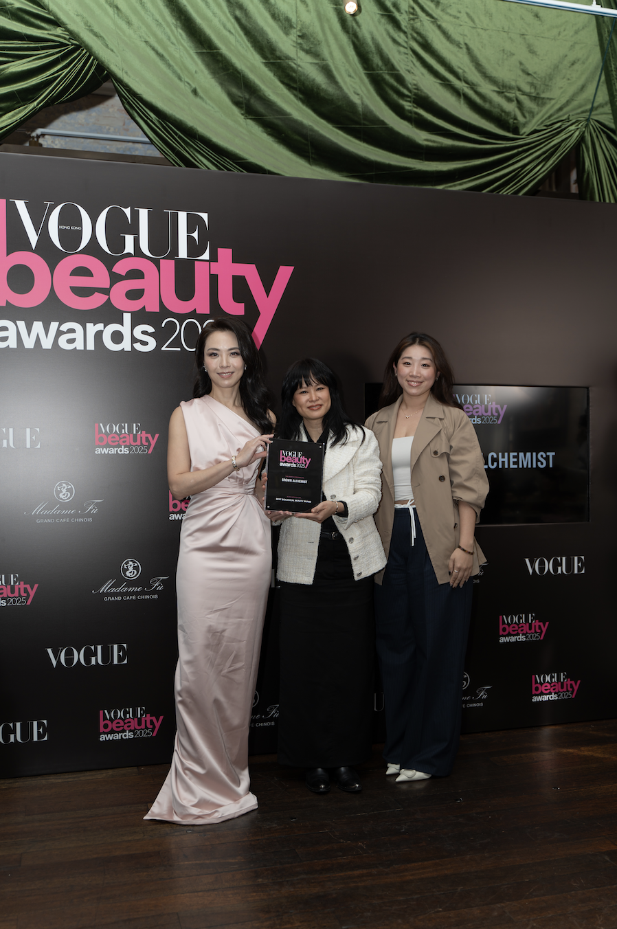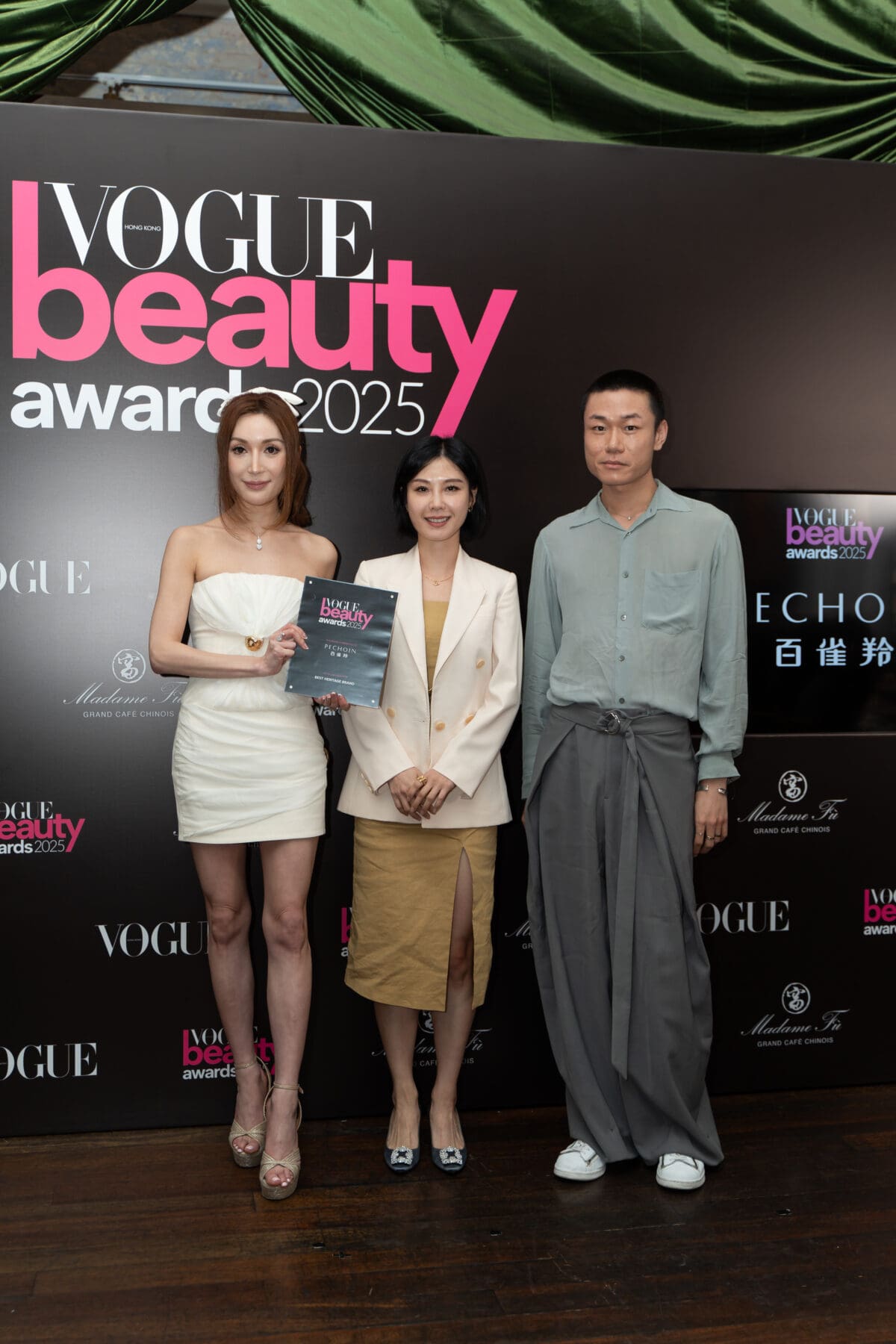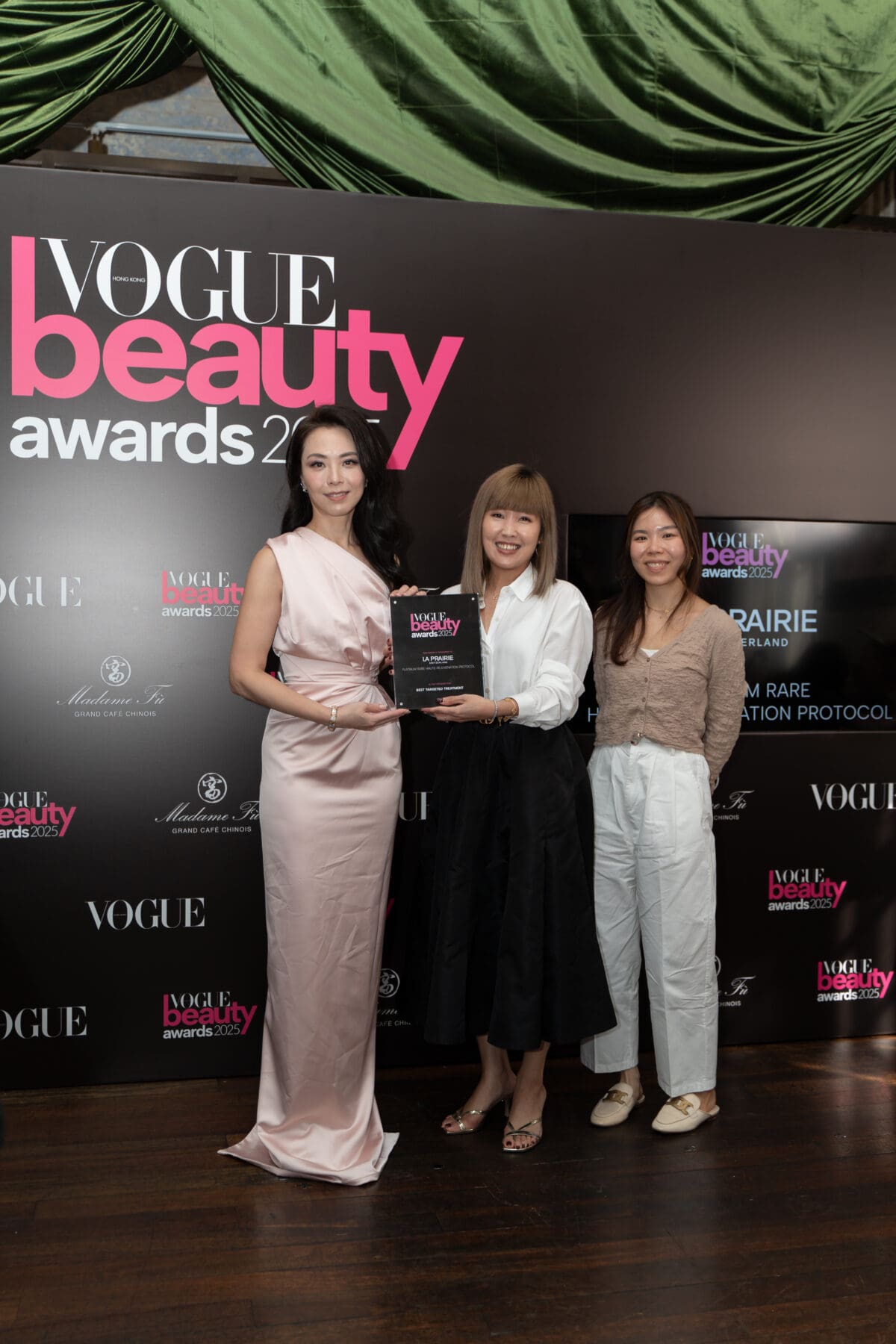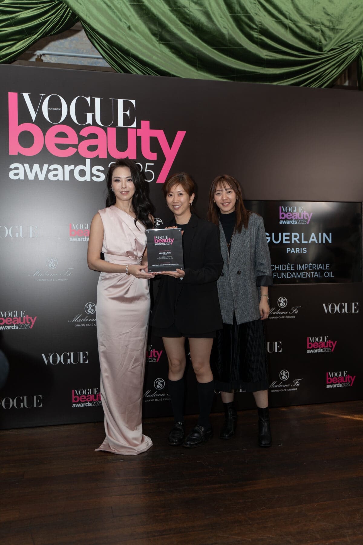 第四屆《VOGUE》Hong Kong美容大賞,昨日(3月13日)在大館Madame Fù Grand Café盛大舉行!今年邀請了三位在城中具有影響力的頒獎嘉賓,包括醉心於慈善事業和藝術活動的柳王明琪(Anne)、近年活躍於珠寶時尚界的何鍶珩(Beatrice)及對時尚美容充滿熱情的張翡玶(Feiping),三位均以盛裝打扮亮相會場,並為在場各位來賓分享美容心得,讓大家體會到她們對「美」的定義,以及對妝容、護膚的奧秘!此外,近期在樂壇話題十足的「音樂女神」海兒(Hedy)亦驚喜現身為一眾來賓大展歌喉,更有香港人氣女團Viva壓軸登場擔任頒獎嘉賓,令場面氣氛高漲。今屆Beauty Awards共頒發出22個美容獎項,涵蓋各方面表現突出和出色服務的品牌,也鼓勵各品牌持續追求卓越,推動美容行業的發展和進步,再次恭喜所有得獎者!