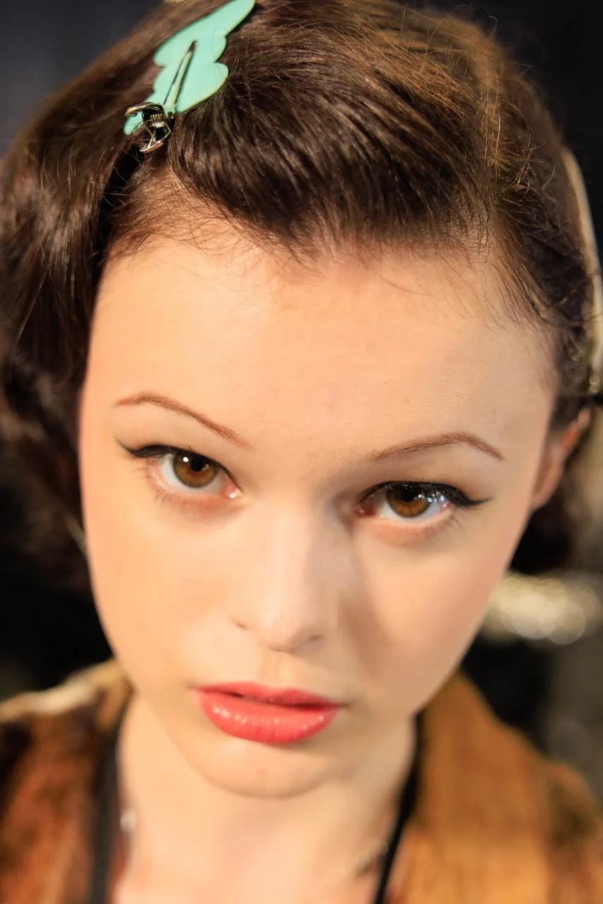 這是Abby Champion 的“Summer of Love”妝容,為了打造她70年代風格的妝容,特別用上了凝膠眼線筆勾勒眼部輪廓。Photographed by Acielle/Style Du Monde