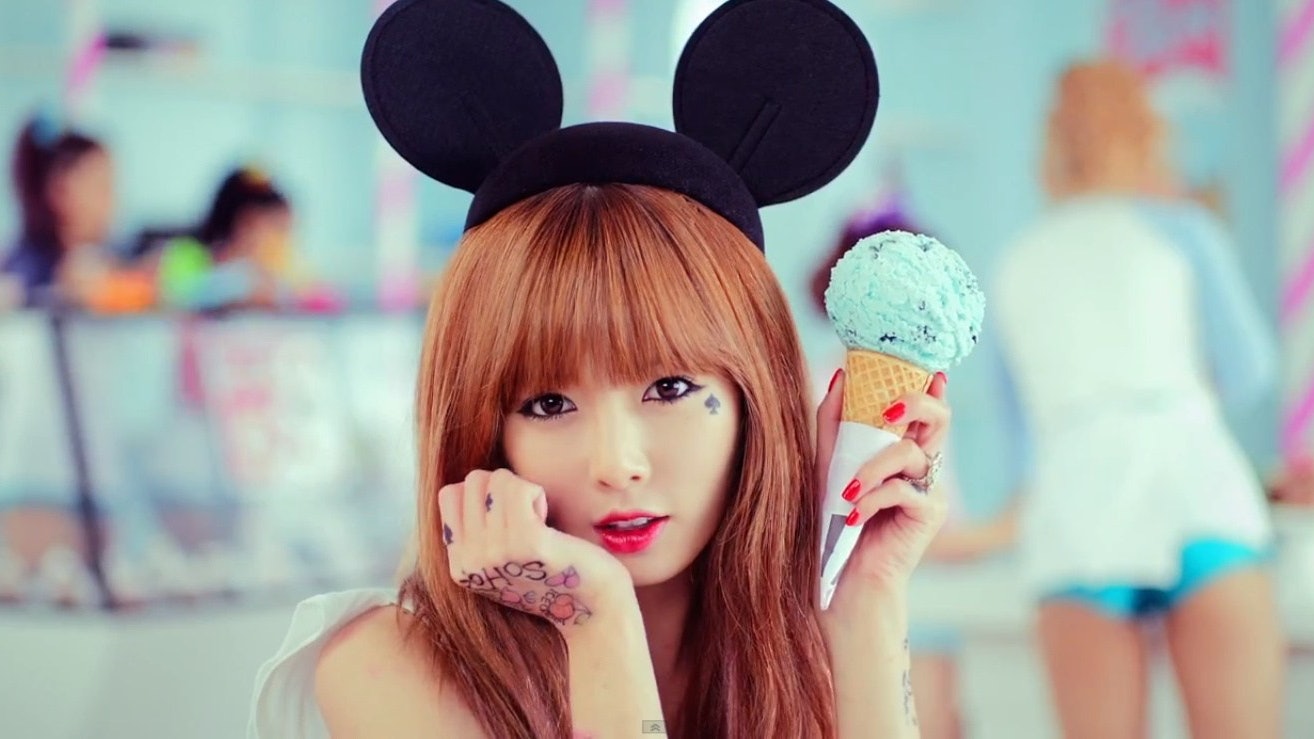 《Bubble Pop! 》成功之後,泫雅繼續發揮性感魅力,在宣傳《Ice Cream》時仍然主張少女感重的妝容。當年正值唇妝的熱潮,還記得漸變的花瓣唇嗎?這股漸變色唇妝席捲全球,泫雅在MV中亦化上鮮色水潤唇妝,帶領熱潮。