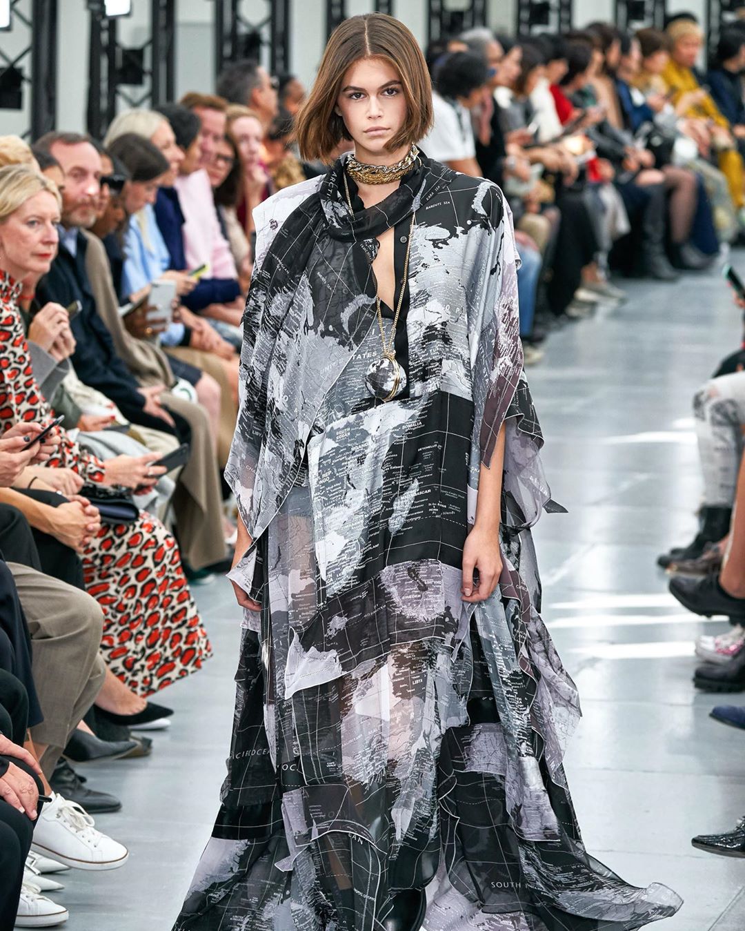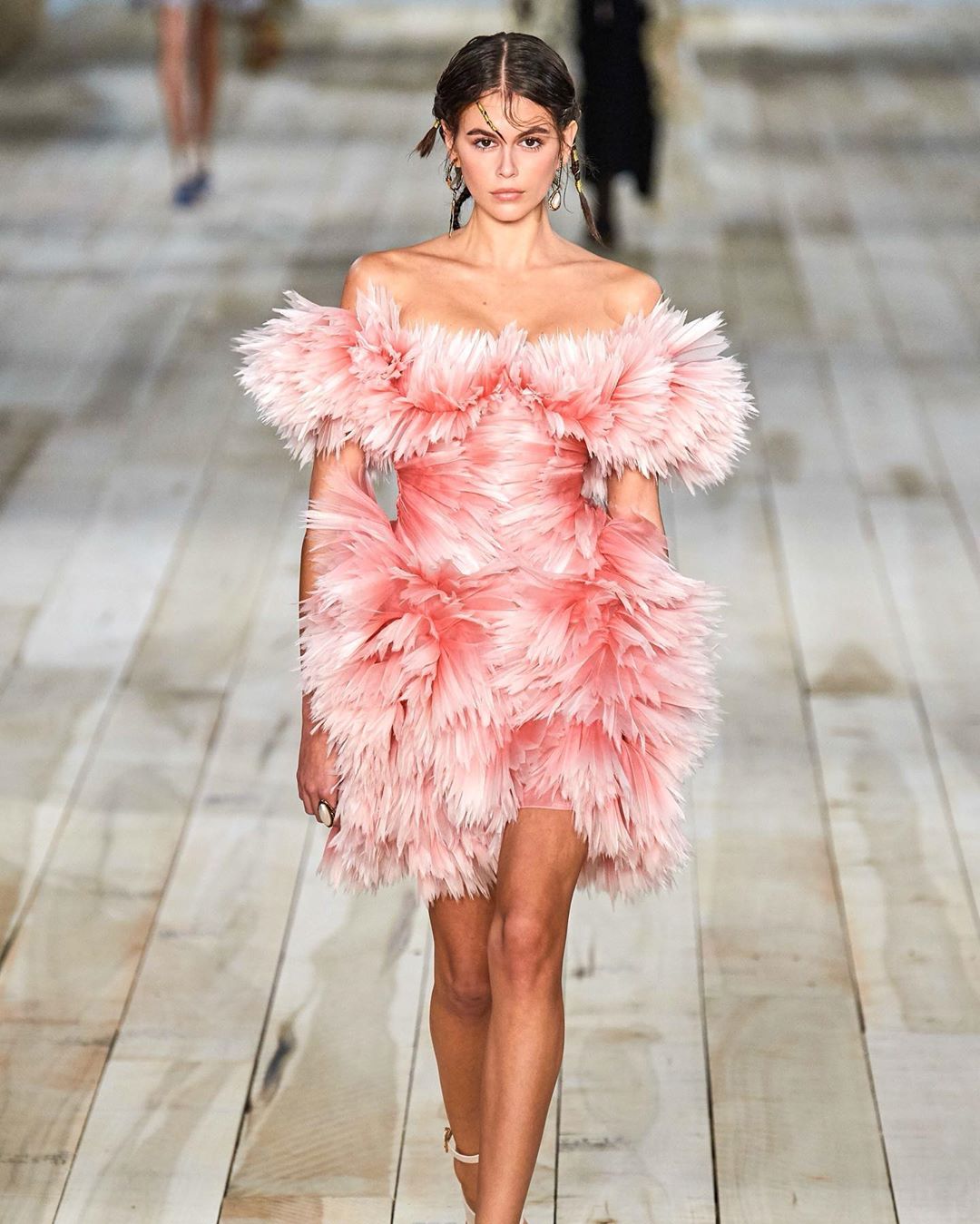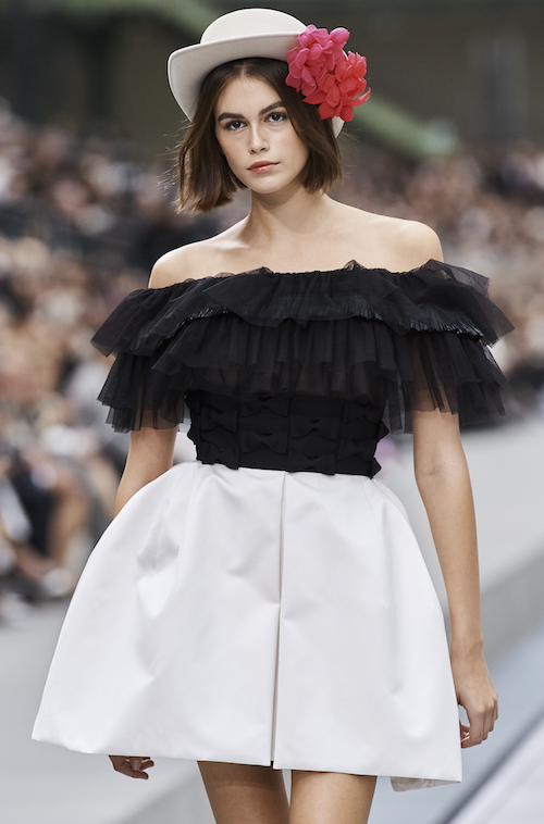 Kaia Gerber以短髮造型首次走上天橋騷,以為這樣的髮型一定離不開型格?反而她偏偏示範如何以短髮襯托出嫵媚感。以頭帶再配深色唇,加上一身全白造型,更加突題出她法式優雅形象。