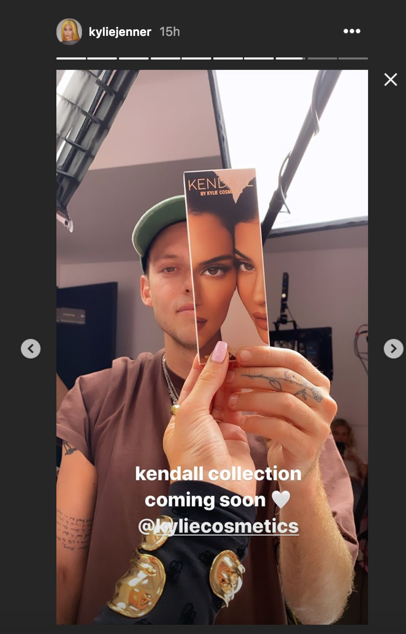 然而她們合作的產品早已曝光,是在Kylie Jenner的Instagram限時動態上首度曝光(以朋友Harry Hudson為背景)!從相片可見,正是Kylie Cosmetics的皇牌唇膏唇線套裝,包裝用上Kylie和Kendall的合照,影像時尚而簡約,跟Kylie Jenner一貫的粉色風格不同,反而添上了時尚感,而且寫下”Kendall collection coming soon”。