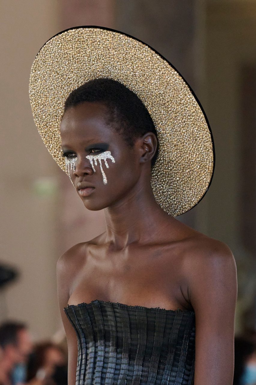 它們標誌著本季高級時裝的第一個美容亮點:在Schiaparelli時裝展中發現了閃光的眼淚,給人以順著臉頰流下的印象。當中的多維效果秀場由化妝師Pat McGrath設計。