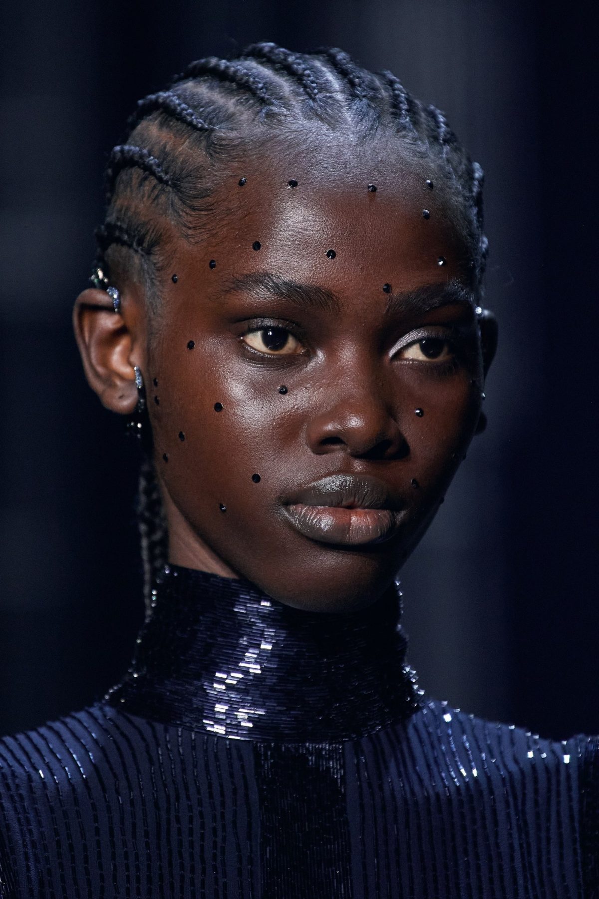 它們標誌著本季高級時裝的第一個美容亮點:在Schiaparelli時裝展中發現了閃光的眼淚,給人以順著臉頰流下的印象。當中的多維效果秀場由化妝師Pat McGrath設計。