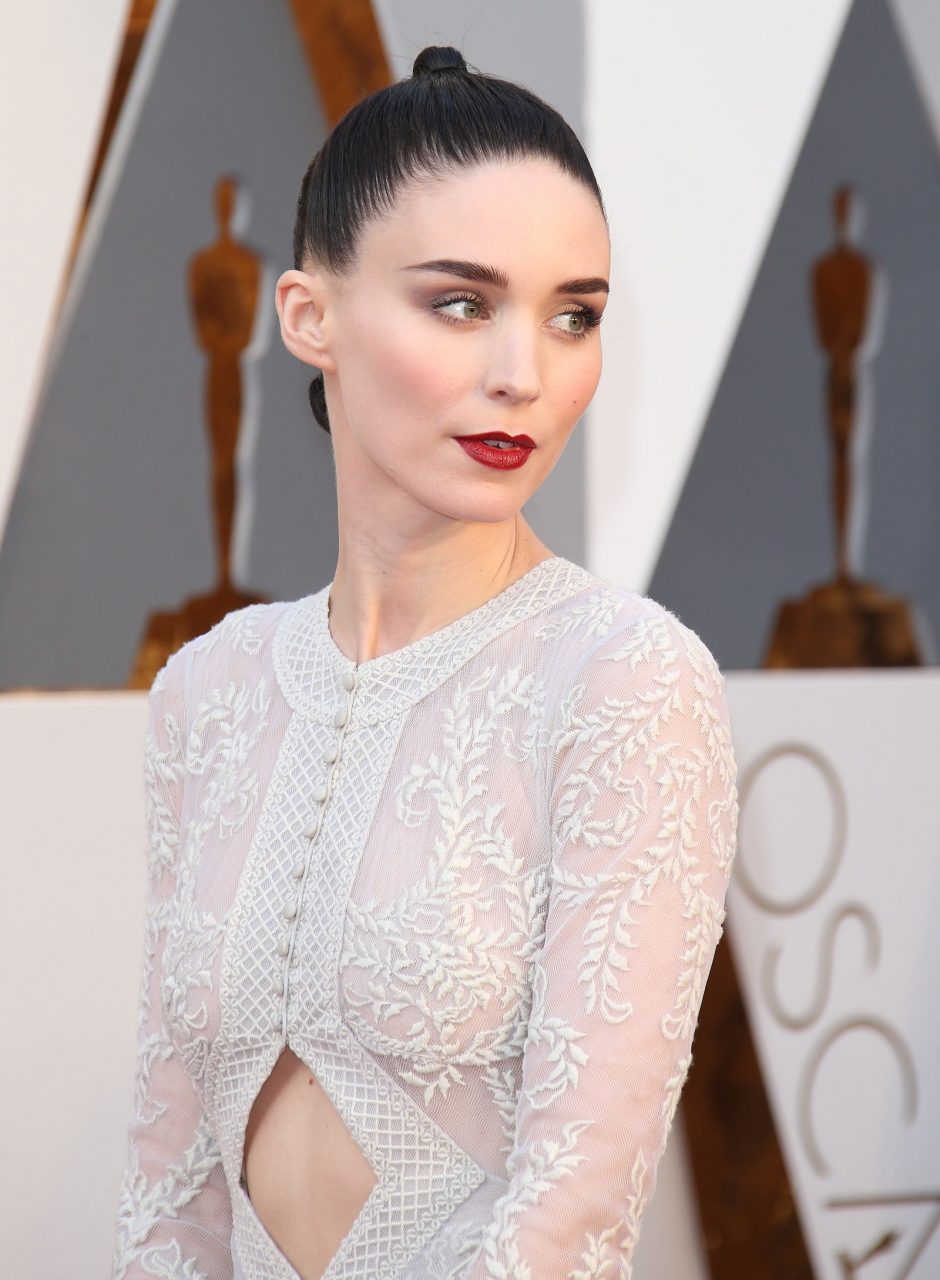 想想Angelina Jolie,她在2012年僅僅通過從她的Atelier Versace連衣裙中伸出一條長腿,就做出了極具影響力的示範,並成為了一個全面的備忘錄。像Cher和Diane Keaton 這樣的女性總是按照自己的喜好前進,並在奧斯卡頒獎典禮上繼續這樣做,這要歸功於完全暴露的腹部和誘張的頭髮。另外對於其他明星來說,頒獎典禮是一個反其道而行之的機會。Rooney Mara用深色的嘴唇和三個圓滑的髮結顛覆了少女的風格,十年前Gwyneth Paltrow也是這樣做的,當時她帶著一抹哥德式的黑色眼線出現,與她那件沒有胸罩的McQueen長袍相配。Margot Robbie在她自己的即興表演中,放棄了銀幕女郎的紅色唇膏,而選擇了不規則的波浪和清新的臉龐,以沒有化妝的造型散發自我光輝。