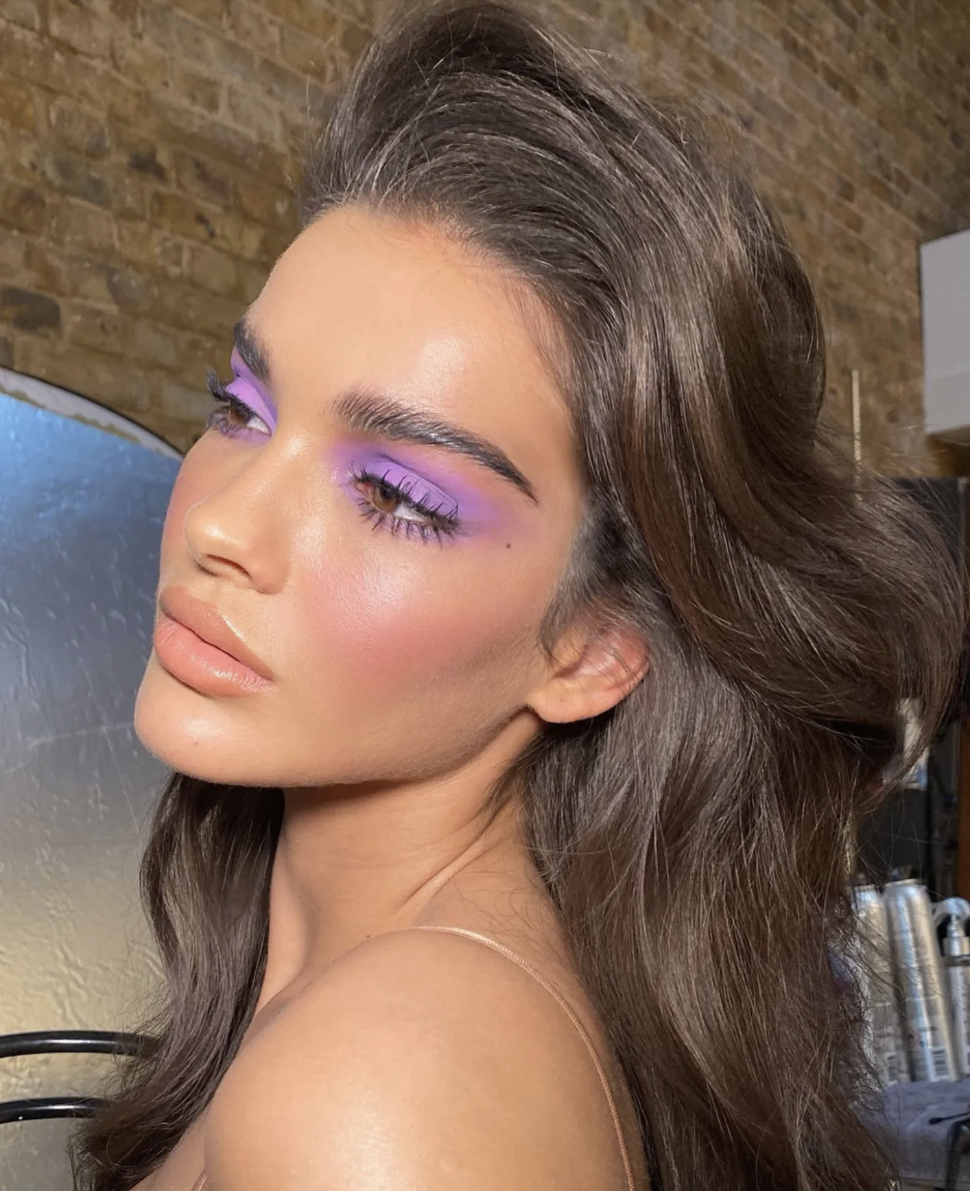 然而紫色有很多種色調,秘訣在於找到最適合自己的色調。如果難以選擇,何不選擇茄紫色眼影,它混合了紫色和粉紅色的暖色調,可以用單色眼影或淺色眼影來重現化妝師Patrick Ta設計的紫色煙燻眼妝。
