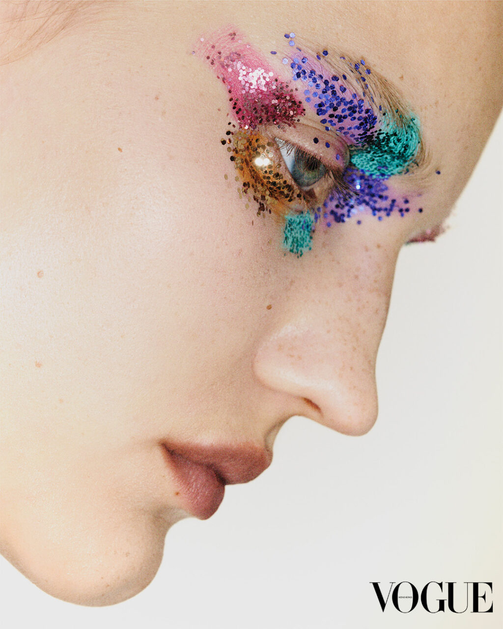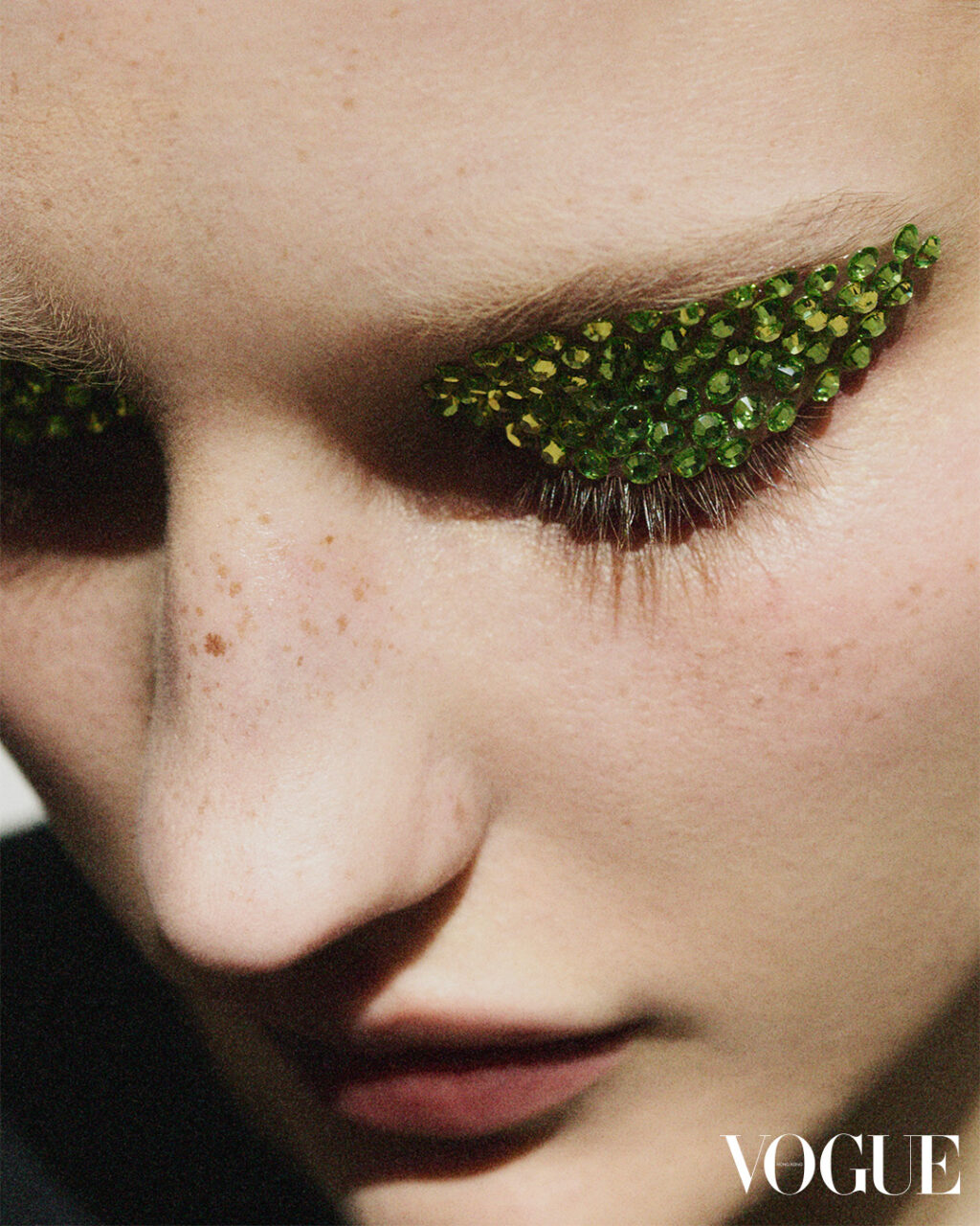 有別以往,從前的寶石妝為了突出閃石的效果,會在其餘妝容表現得盡量簡約,然而最新潮流之中,不再需要這樣的「平衡」,反倒是用更華麗繽紛的妝容來襯托閃石,可以是紅粉菲菲的胭脂又或是不一樣的唇妝。這股風潮不僅呼應了「愈多愈好」的 Y2K 美學,更讓妝容成為自我表達的藝術畫布,打造出一個更閃耀的個人風格!