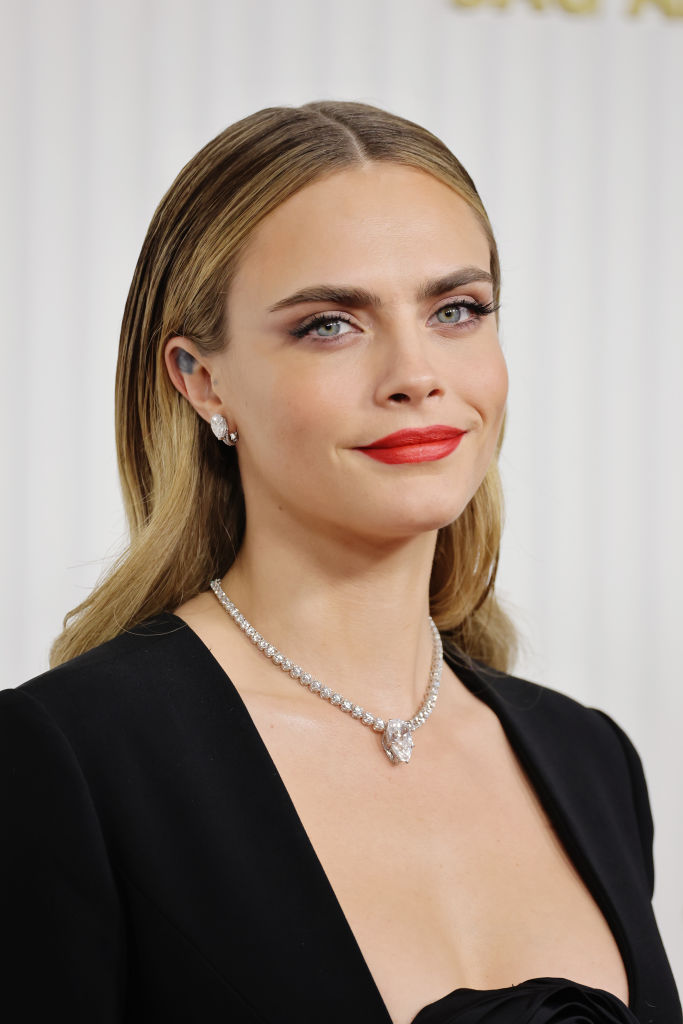 LOS ANGELES, CALIFORNIA - FEBRUARY 26: Cara Delevingne attends the 29th Annual Screen Actors Guild Awards at Fairmont Century Plaza on February 26, 2023 in Los Angeles, California. (Photo by Amy Sussman/WireImage)