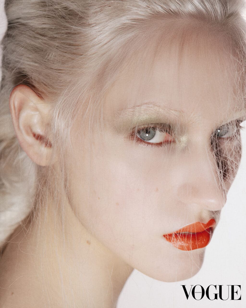因此可以把銀色作為整個妝容的重點,把冷色系的灰銀色放於整個眼蓋上令雙眼變得更立體,如果想更加前衛亦可把眉毛遮蓋,從而加強一種未來感及令銀色更顯突出。為了平衛整體妝容以免過於偏白,可為雙唇塗上充滿光澤感的唇膏並勾畫出唇形,打造出一種如機械人般的冰冷感覺。