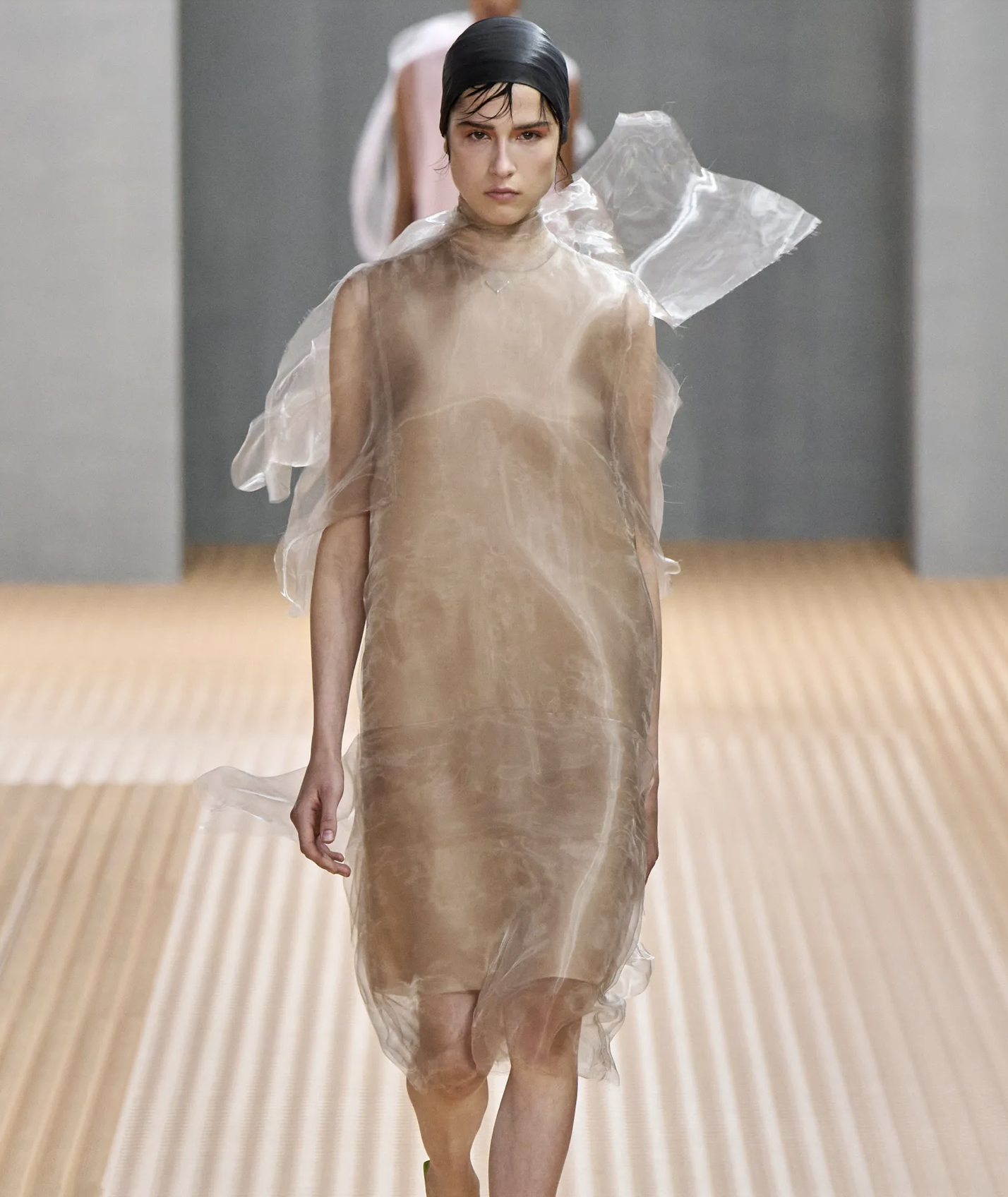 無論是散開在前額上,還是梳得整整齊齊,米蘭時裝週上的頭髮都帶有悄然潤滑的細節。 Prada的超寬髮帶下方呈現出風格化的髮絲,Giada、Tom Ford和Adreadamo等天橋都將髮束部分或完全推離臉部。 而在Etro秀場上,長度部分被拉至臉部,巧妙地提升了濕漉漉的造型趨勢。