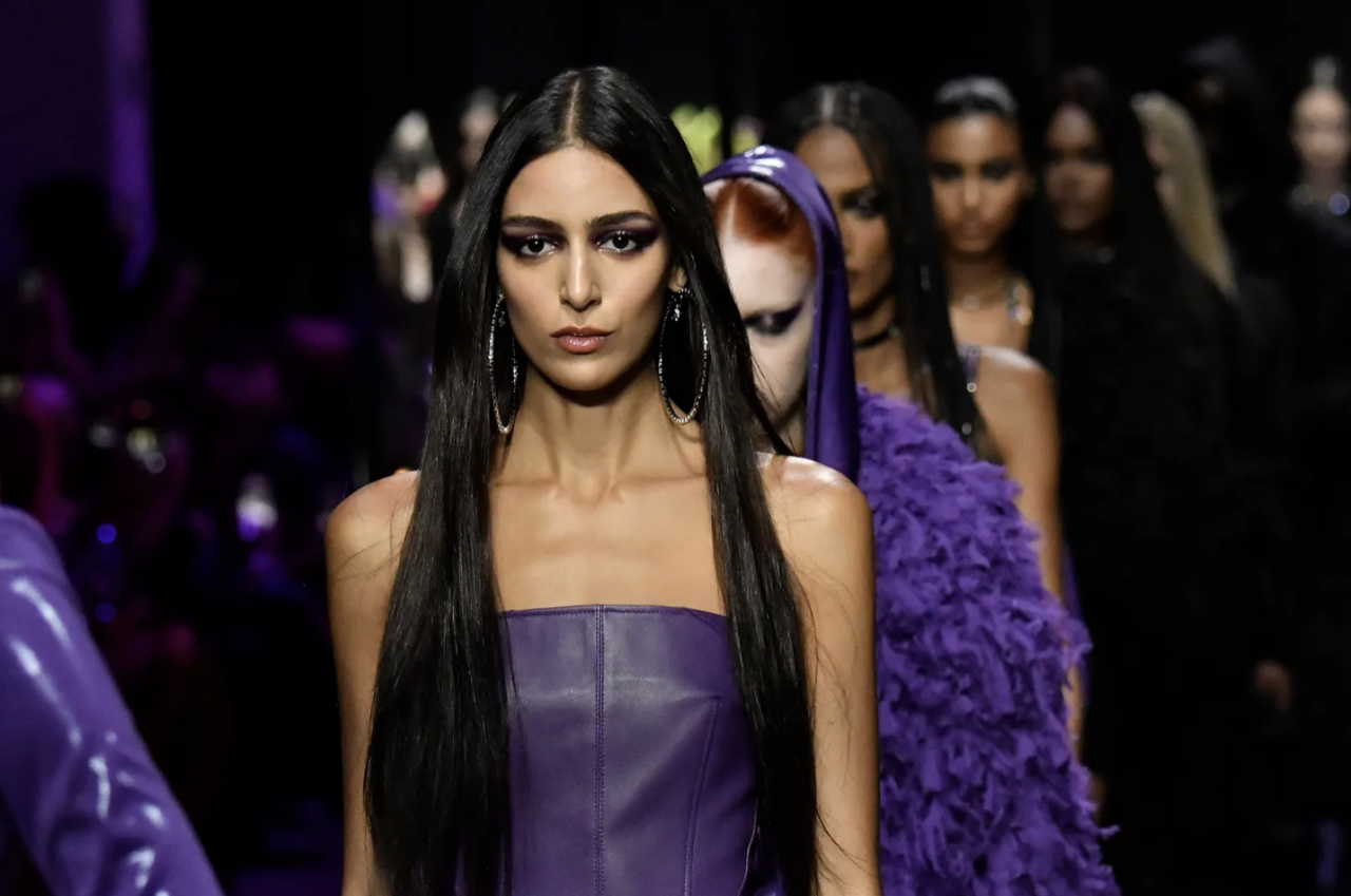 化妝師Pat McGrath在Versace創造出令人著迷的眼睛,完全適合Donatella的系列。 McGrath說,這個概念「暴露了顛覆性的美,激起了沒有限制的創造力」。作為熟悉的煙燻黑眼妝的替代品,這種改用翼狀的紫羅蘭眼影是一個偉大的季節性轉折,試著將Pat McGrath同名品牌中的Mthrshp Mega Violet Vixen眼影逐漸塗上。